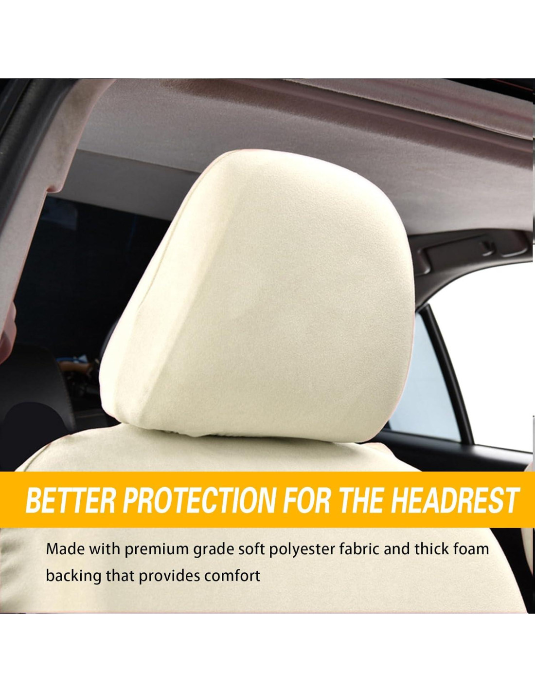 ijuicy 2 PCS Fundas de reposacabezas para coche, fundas suaves a prueba de polvo para coches, protector de reposacabezas de tela transpirable para asiento de coche, universal para la mayoría de coches, camiones, SUV (Beige)