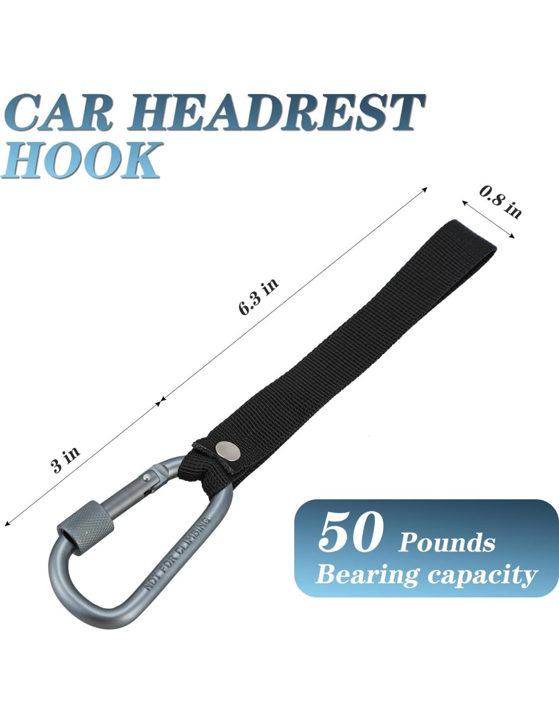 - TAMAÑO DESEADO - Para fines de compatibilidad, el lazo de poliéster del gancho de reposacabezas del coche mide 6.3 inches (16,00 cm) y 0.8 inches (2,03 cm) de ancho, ideal para colgar en el reposacabezas de tu asiento de coche. El mosquetón mide 3 inches (7,62 cm) de largo, lo que lo hace compatible con la mayoría de los artículos que te gustaría colgar detrás de tu asiento.