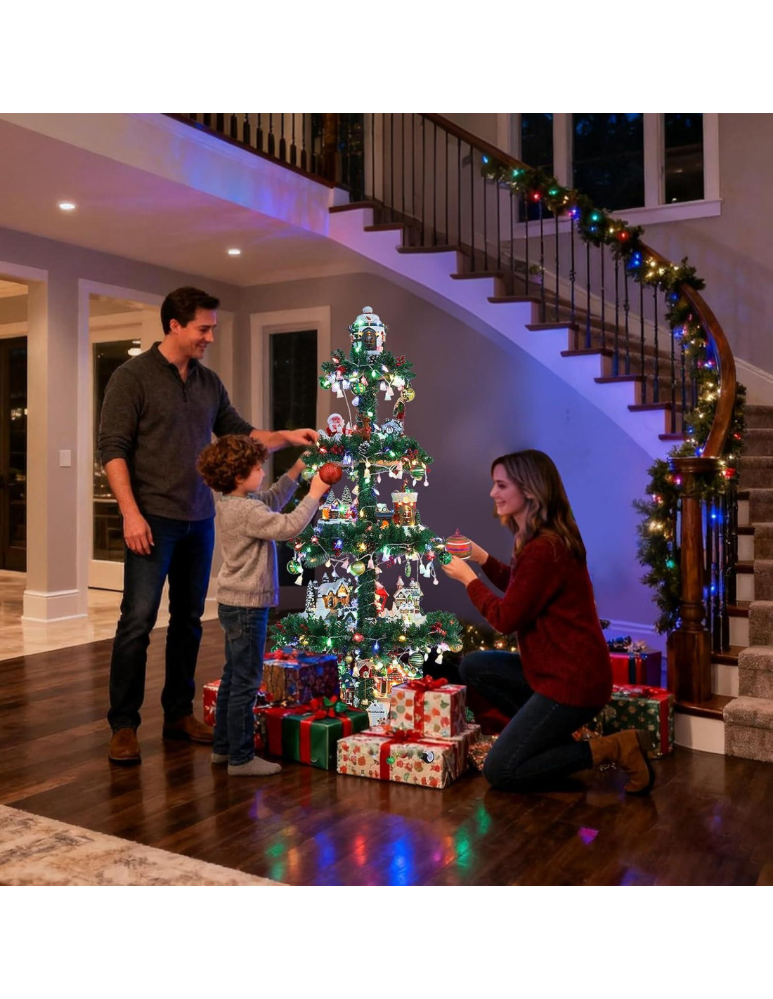 - Comparado con los árboles de Navidad tradicionales, nuestro árbol de Navidad de exhibición proporciona más y mayor espacio para decoración. Puedes hacer todo lo que necesites e imagines, convirtiéndolo en tu árbol de Navidad único. Después de haber creado tu mini ciudad navideña o pueblo de nieve, puedes publicarlo en redes sociales para mostrar tu creación. Tus amigos seguramente lo admirarán y atraerá muchas miradas. Ellos alabarán tu excelencia y envidiarán tu árbol de Navidad único.