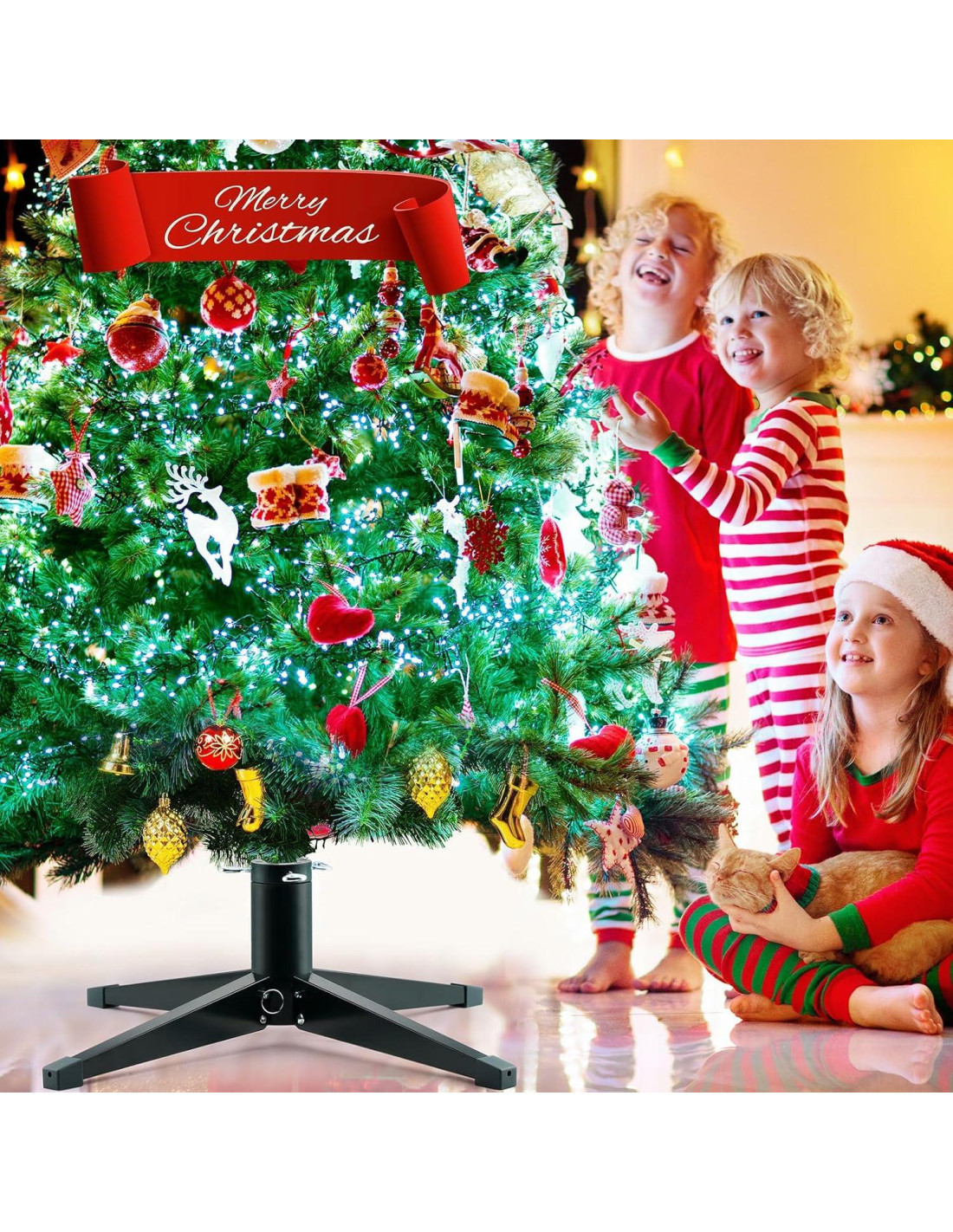 - Material resistente y confiable: la mayor parte de la base para árbol de Navidad artificial está hecha de materiales metálicos de calidad y una pequeña porción de plástico de calidad, que es liviano, fuerte, duradero, seguro y no fácil de romper o deformar, y puede mantener el equilibrio y la estabilidad del árbol al girar, proporcionando un carrusel de árbol de Navidad seguro y confiable