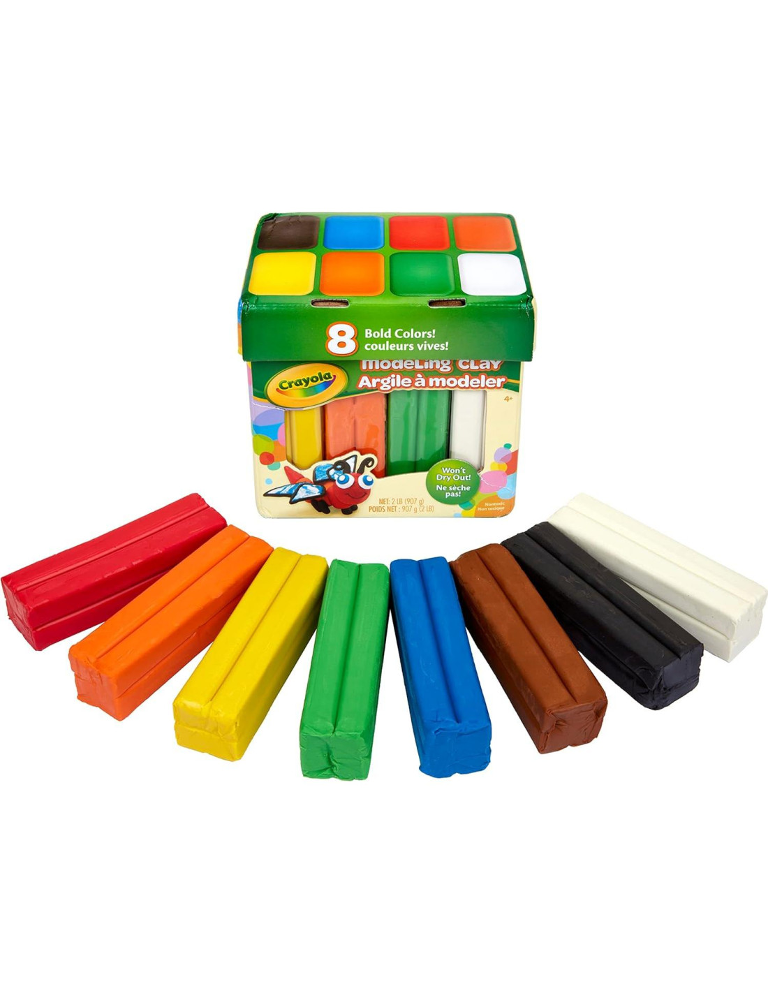 ¡Moldea, construye y esculpe! Los jóvenes modeladores tienen todo lo que necesitan para moldear esculturas suaves con este set de 2lbs de Arcilla para Modelar Crayola en Colores Brillantes. Esta arcilla versátil y no endurecedora es completamente reutilizable. Incluso se mantiene suave después de moldear, asegurando que pueda seguir el ritmo de la imaginación de tu hijo. La arcilla también resiste el agua gracias a su fórmula a base de cera y aceite, lo que prolonga aún más su vida útil. Este set presenta 8 colores que incluyen arcilla Negra, Blanca, Marrón, Roja, Naranja, Amarilla, Verde y Azul. El material de modelado Crayola es un básico para proyectos en el aula, tareas escolares y manualidades en casa. Es un gran regalo para niños de 4 años en adelante.