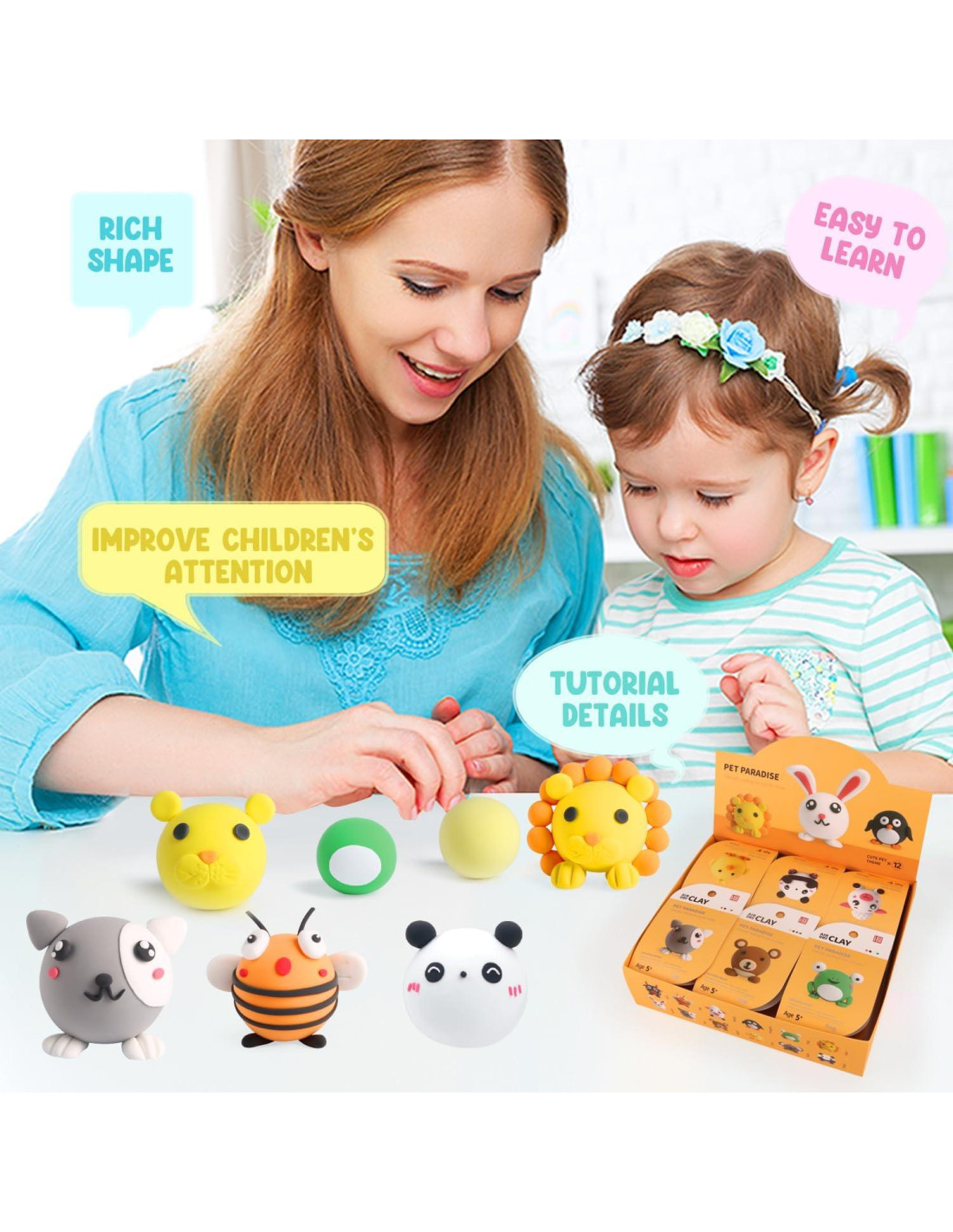 - [Juguetes Creativos y Regalos Perfectos] - Cada set de arcilla secada al aire temática está empaquetado en una caja de regalo con un empaque exquisito, perfecto para cumpleaños, favores de fiesta o regalos de navidad para niños y niñas de 5 a 8+ años. Jugando con tus hijos, podrías divertirte y fortalecer la relación padre-hijo simultáneamente.