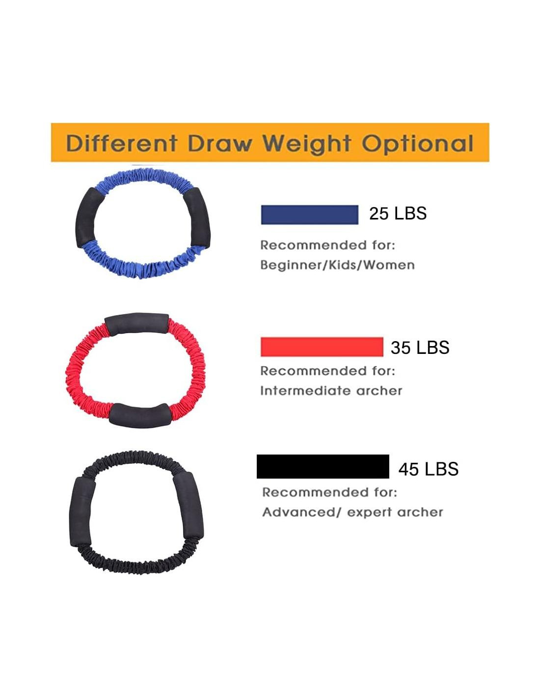 - ELIGE EL PESO DE TIRADA APROPIADO: Peso de tirada 25/35/45 lbs opcional, se recomienda que los principiantes elijan 25 lbs, intermedios elijan 35 lbs, avanzados/expertos elijan 45 lbs. Rango de longitud de tiro recomendado 11"-33" para maximizar la durabilidad. (NOTA: Limitado por la longitud del brazo/longitud de tiro recomendada, el peso de tiro medido puede ser ligeramente menor que el peso de tiro teórico).