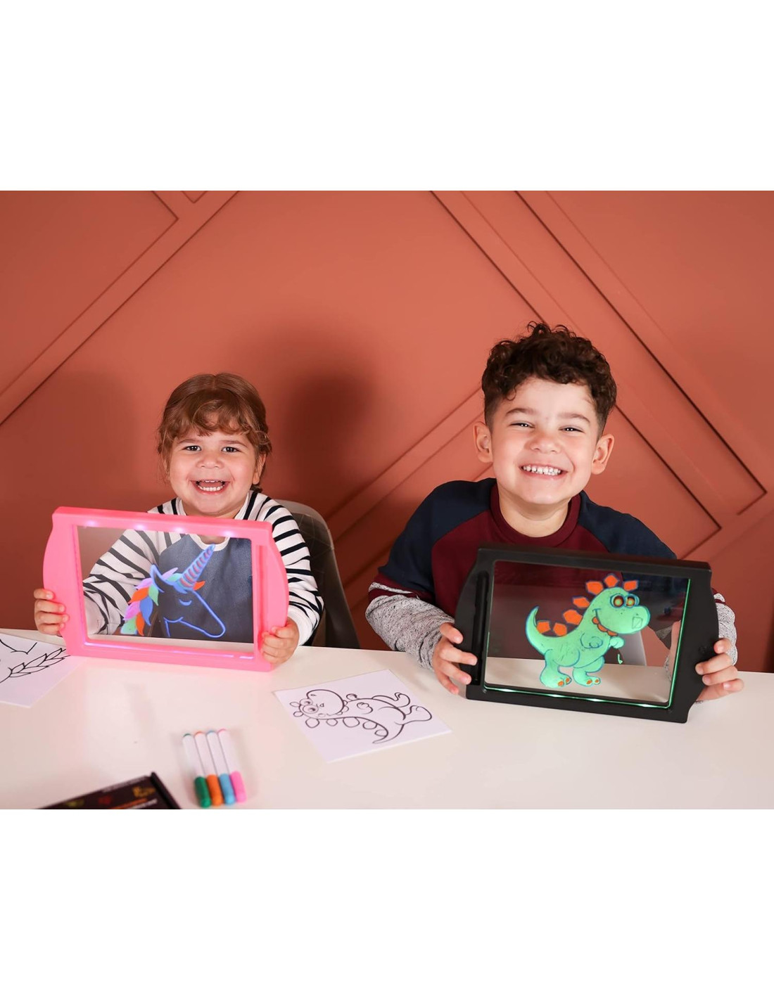- CAMBIA DE COLOR CON 36 EFECTOS DE LUZ MÁGICOS: Cambia de colores apagando las luces y observa cómo tus creaciones cobran vida con luces neón brillantes. ¡Así que sé creativo y haz que tu arte mágico se transforme y cambie de color con 36 efectos de luz mágicos increíbles! El tablero iluminado es del tamaño perfecto para caber en una bolsa de viaje o mochila, lo que te permite dibujar en cualquier lugar.