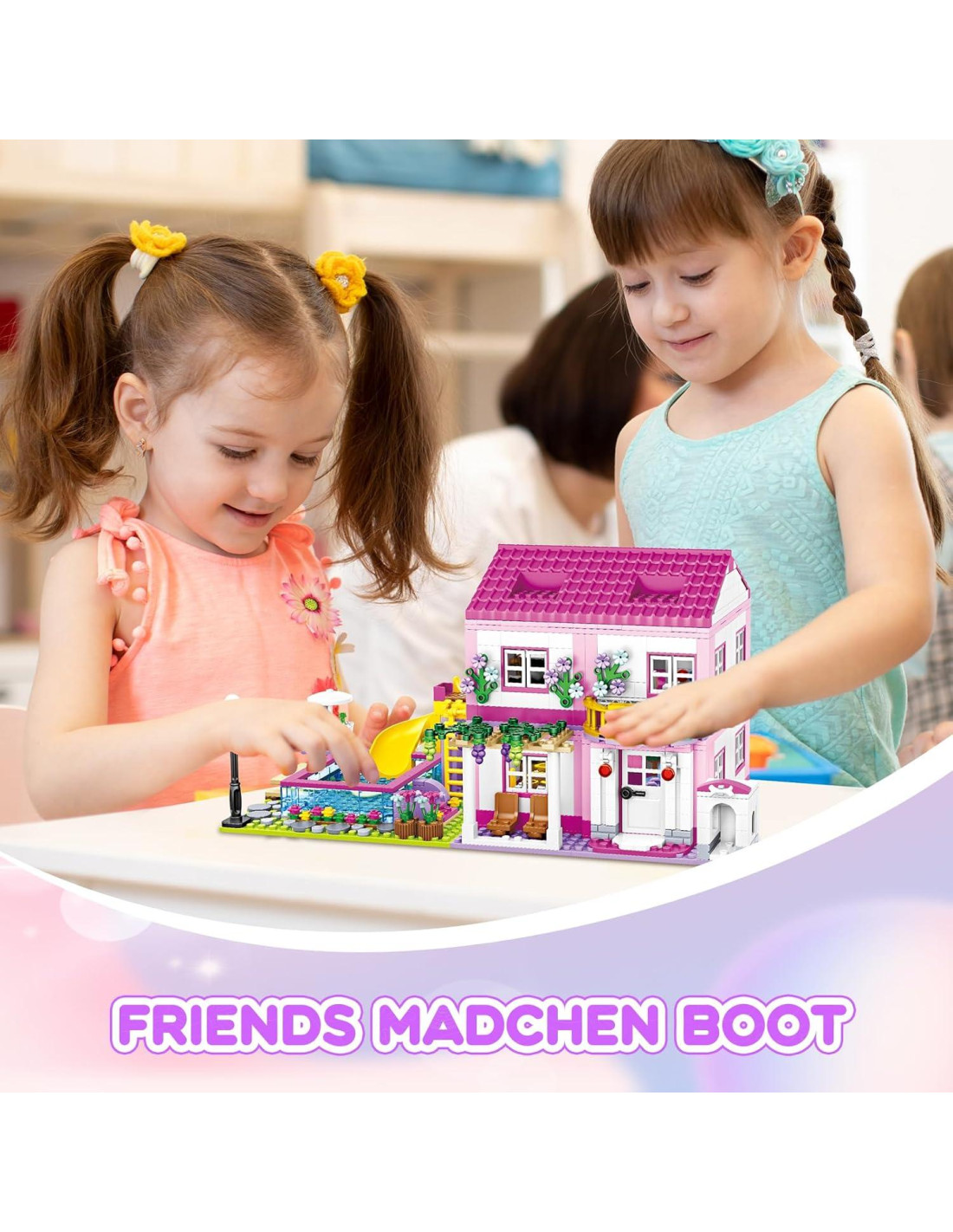 - Desbloquea la Imaginación con Bloques de Construcción Con 1018 bloques de construcción, este juguete de casa de villa de princesa permite a tu hijo explorar su creatividad construyendo una impresionante casa de amigos completa con un jardín de piscina abierta, sala de pintura, área de comedor al aire libre y una acogedora sala de estar.