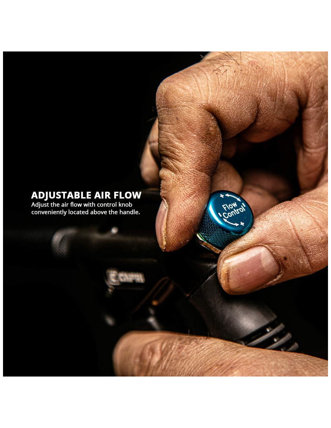 - La pistola de aire de alto rendimiento ofrece un flujo de aire potente de hasta 2x a 72 CFM, brindando una cobertura eficiente sobre grandes áreas de trabajo