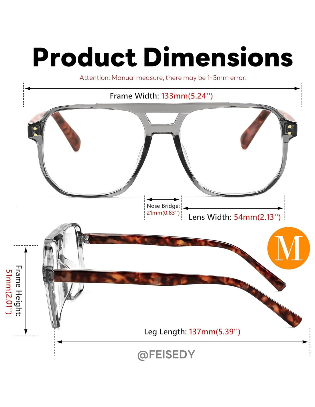 - [Diseño Oversized de Aviador Elegante] Estas gafas con filtro de luz azul cuentan con un marco ligero cuadrado oversized, siguiendo el diseño clásico de gafas de los años 70, haciéndote lucir más elegante mientras proteges tus ojos. Perfectas para usar en casa, en la oficina, en el coche o en tu área de lectura favorita.