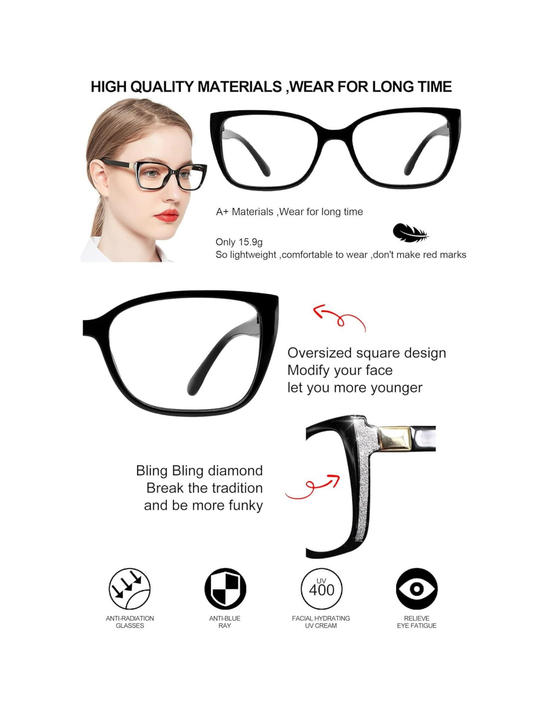 - Filtro de visión clara alta: Las gafas de juego grandes para mujeres pueden bloquear los deslumbramientos; Las lentes de luz azul endurecidas utilizan lentes claras de clase A que tienen mayor precisión, lo que hace que la visión sea clara y precisa. Estas gafas de lectura abren tu visión para que no tengas los puntos ciegos tradicionales con gafas de diseño, permitiéndote una visualización cómoda. Por ejemplo, cuando lees un libro, pescas o usas el teléfono móvil, estas gafas de lectura tienen 1.0x, 1.25x, 1.5x, 1.75x, 2.0x, 2.25x, 2.50x, 2.75x, 3.0x, 3.5x, 4.0x, 5.0x, 6.0 de aumento.