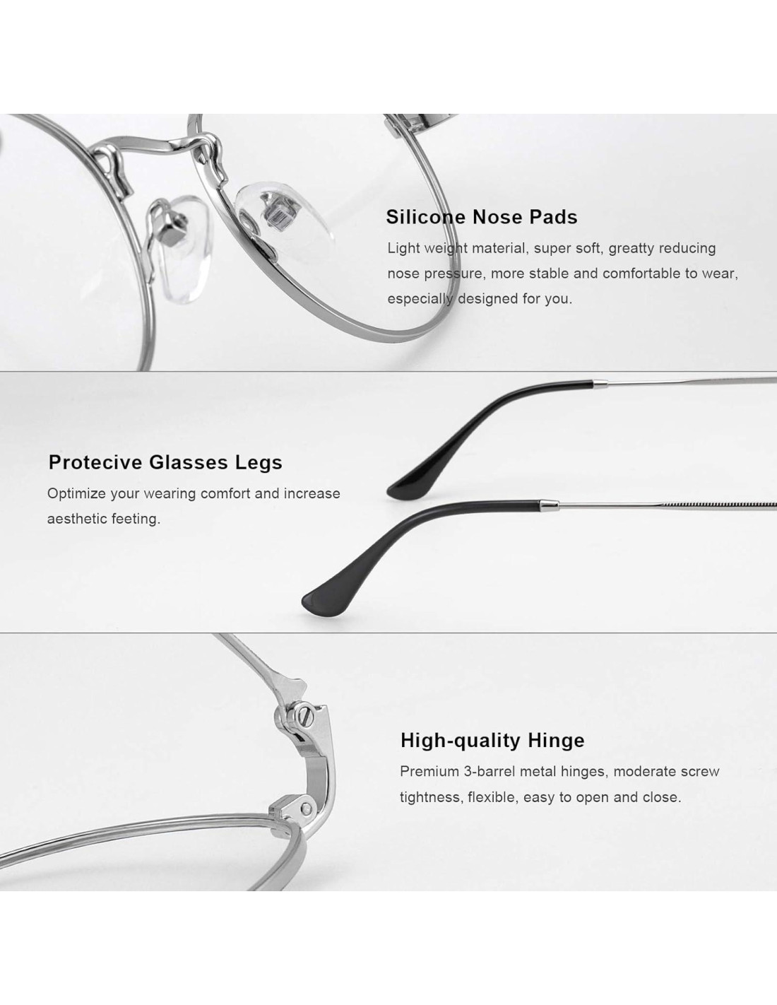 - MATERIAL DE ALTA CALIDAD - Hechas con aleación metálica que es ultra liviana pero fuerte y duradera. Viene con patas de bisagra de carga por resorte y almohadillas nasales de silicona ajustables que permiten la máxima comodidad y flexibilidad.
