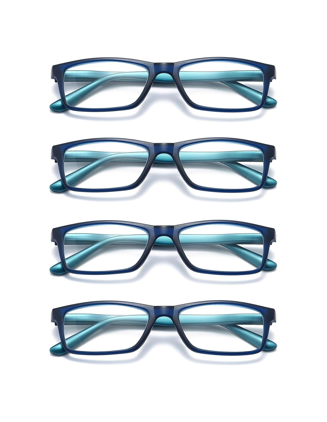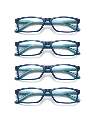 - Gafas de lectura ligeras/cómodas: Paquete de 4 gafas de marco rectangular, duraderas y flexibles, apenas puedes sentir su presencia, cómodas para usar durante mucho tiempo