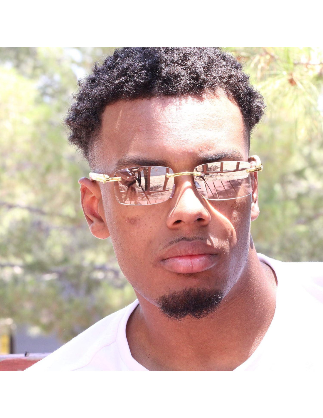 - Gafas de sol rectangulares sin montura: Los buffs de madera y los lentes coloridos te darán la oportunidad de elegir los colores que amas para tus atuendos cuando salgas a comprar, correr, conducir. Agrega un toque clásico a tu estilo.