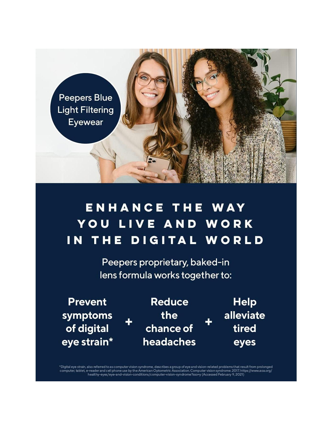 - LENTES DE ENFOQUE DE LUZ AZUL PEEPERS - mejoran tu capacidad para vivir y trabajar en el mundo digital. Al filtrar la luz azul visible de alta energía, nuestra tecnología incorporada trabaja para prevenir síntomas de fatiga ocular digital*, ayudar a reducir la posibilidad de dolores de cabeza y ayudar a aliviar los ojos cansados. Es una protección a la moda para expresar tu estilo individual.
