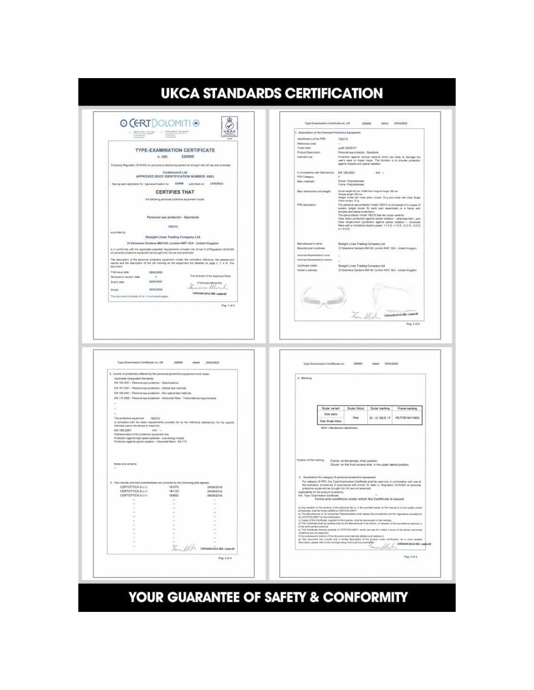 - Cumple con los estándares ANSI Z87.1+ para la protección ocular personal. Certificado por CE EN166ft, marco y lente marcados CE y ANSI.