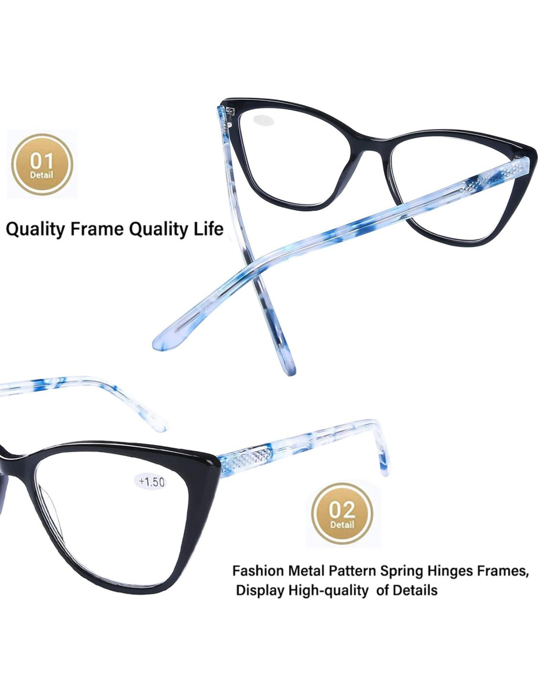 - HINGE DE RESORTE FLEXIBLE - Gafas de lectura de diseñador en forma de ojo de gato oversized con bisagras de resorte personalizadas que se ajustan automáticamente a la presión. 4 colores populares: Negro, púrpura, rosa, champán para elegir