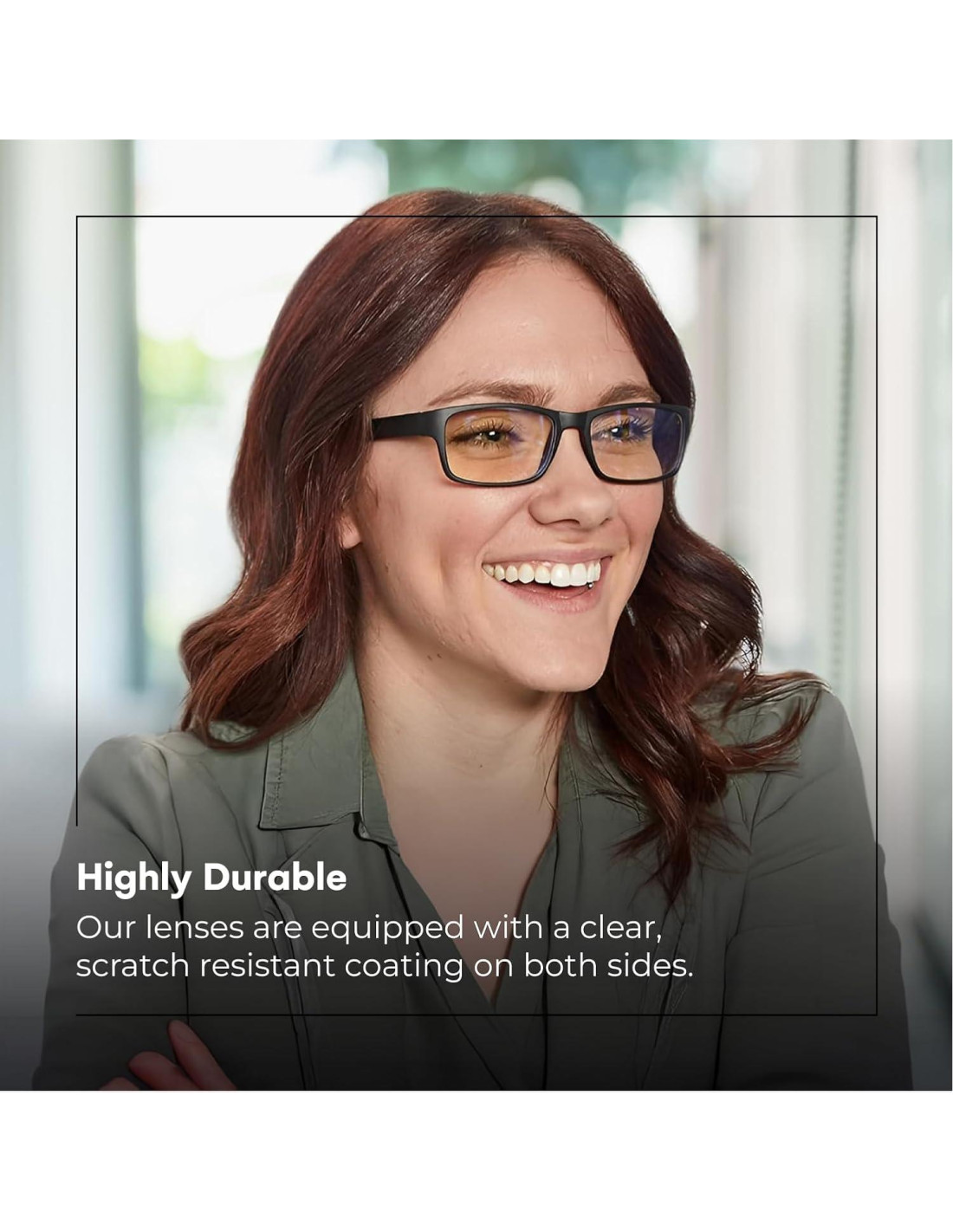 - Resistente a los arañazos - Tus gafas siempre están en riesgo de arañazos dañinos. Nuestras lentes tienen un recubrimiento claro y resistente a los arañazos en la parte delantera y trasera, lo que crea un escudo más profesional que protege tus gafas.