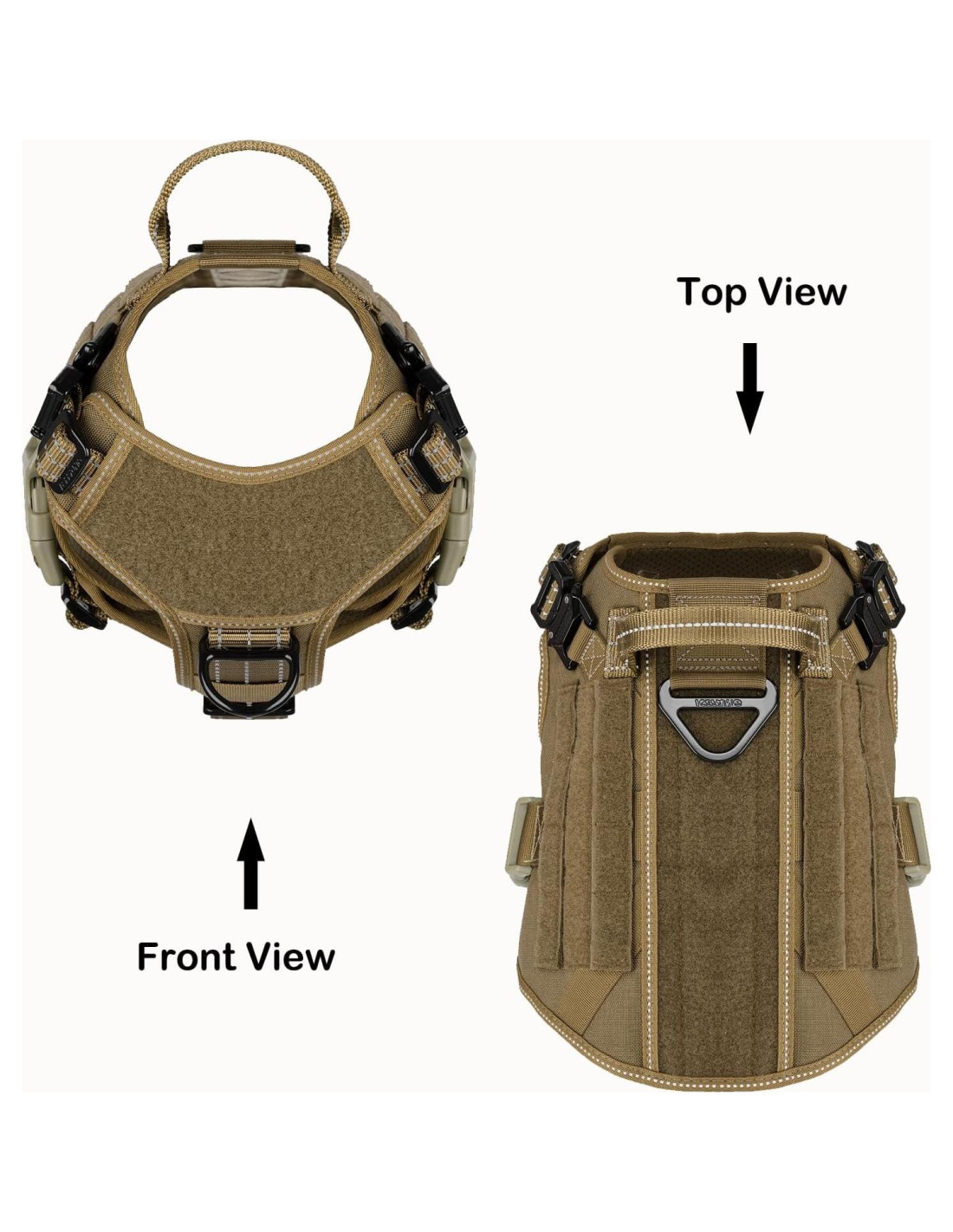 - [TRANSPORTE MANOS LIBRES]: Dos tiras de 1" de Molle (Pequeño: 3 x Gancho & 2 x Bucle; Mediano: 4 x Gancho & 2 x Bucle; Grande/Extra Grande: 5 x Gancho & 2 x Bucle) cosidas en ambos lados, permite que tu perro lleve equipo en entrenamiento/caminatas diarias/a venturas de senderismo, es compatible con bolsa Molle/PALs, también puedes enganchar el tazón del perro, botella de agua y juguete a través de un mosquetón en forma de D (no incluido).