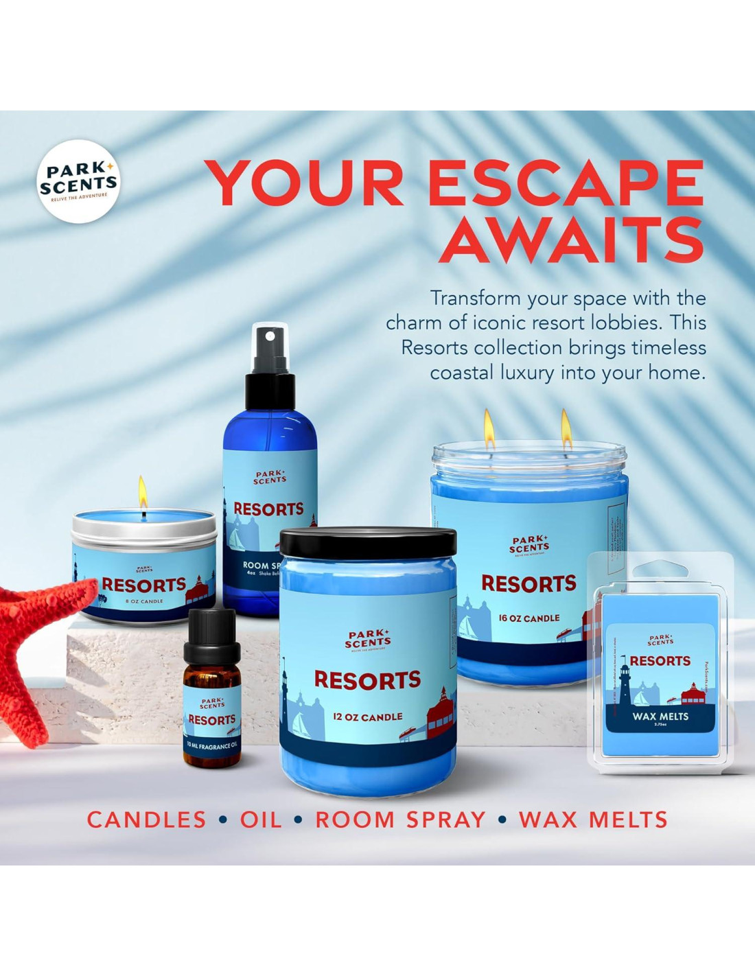- RESORTS - Un gran aroma perfecto para cualquier persona de Florida. Este aroma de Playa y Yate completará tu estancia en el club, evocando lobbies recién limpiados, balcones con brisa y vibras de resort de lujo-presentando una mezcla de fragancias de Trébol Verde, Hoja de Aloe, Cítricos y Margarita Verde.