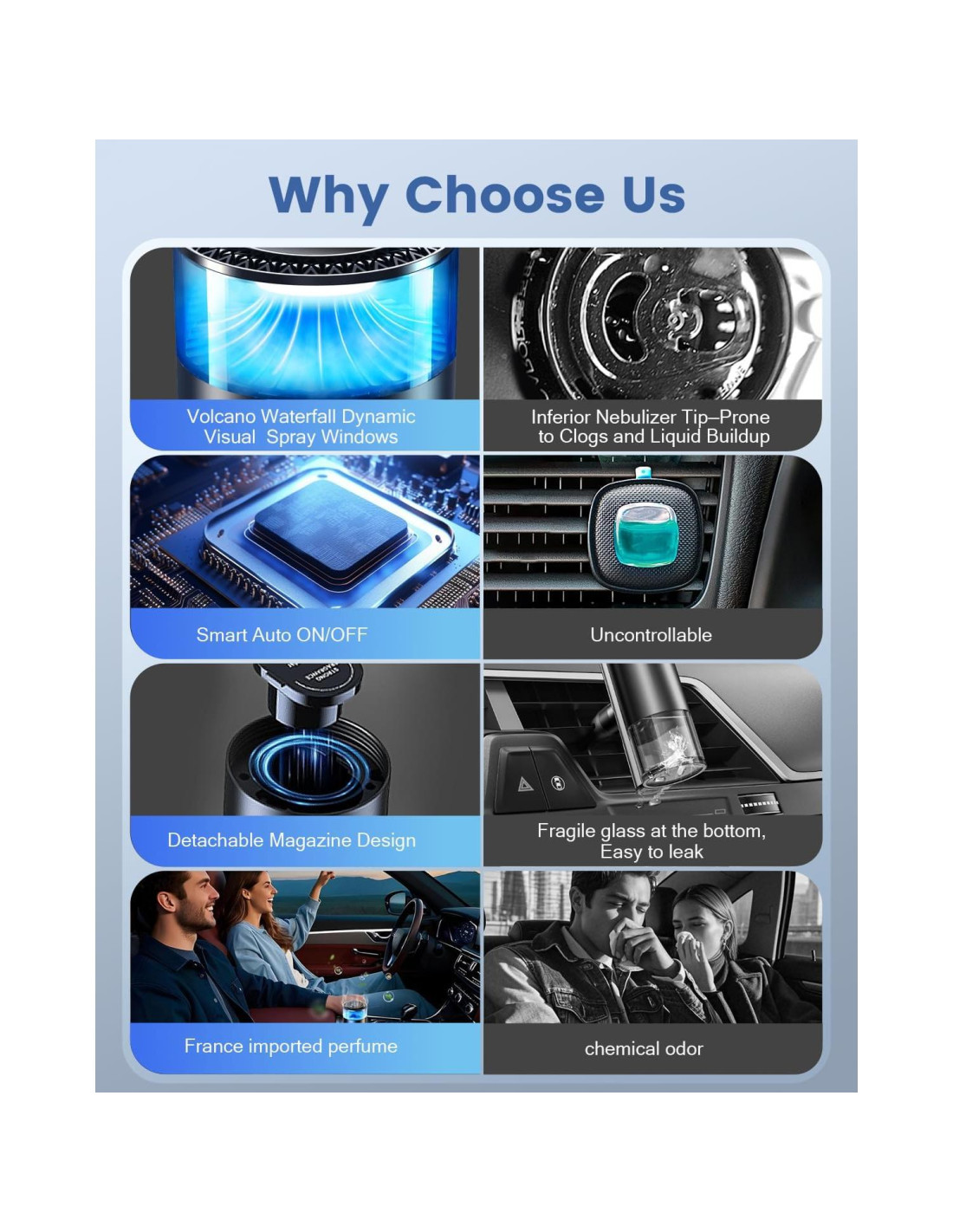 - [Ambientador para Auto Inspirado en Cascadas] Transforma cada viaje en una experiencia fragante con el ambientador para auto inteligente, inspirado en las majestuosas Cataratas del Niágara. El diseño único de cascada permite que la fragancia se eleve como un suave arroyo, llenando tu auto con una brisa natural y refrescante.