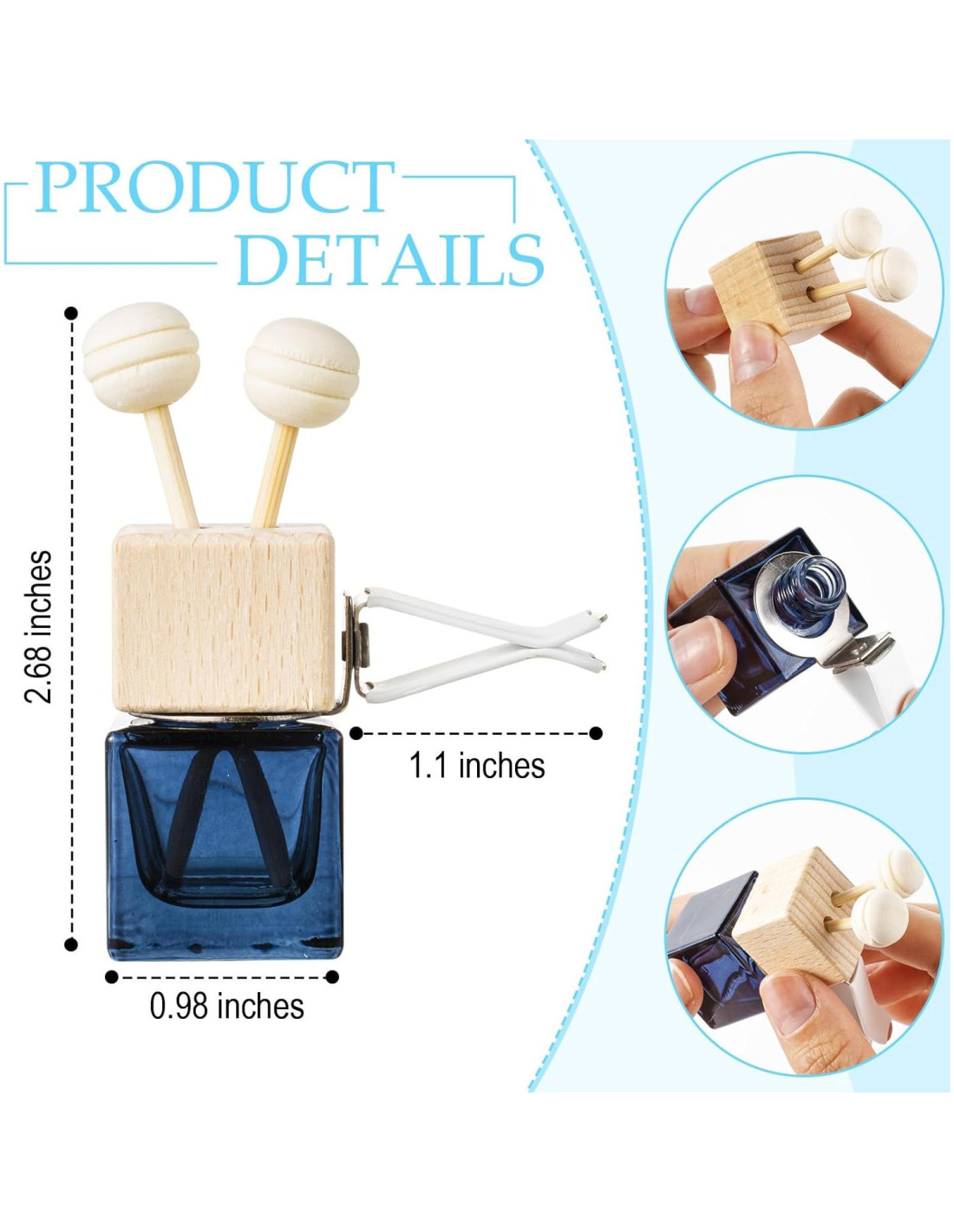 - Cantidad Abundante: recibirás un total de 100 ambientadores para vehículos (solo botellas vacías, no contienen aceite esencial ni perfume); Cada botella de vidrio está equipada con un clip, un tapón interior, una tapa de madera y 2 varitas de incienso, que son suficientes para tu uso diario y reemplazo