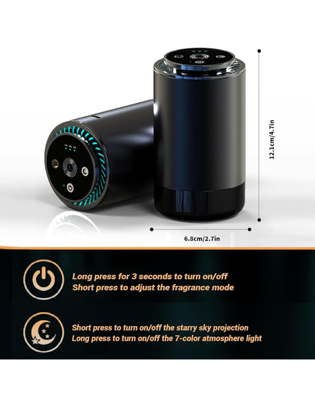 - [Proyector de Cielo Estrellado y Luz de Ambiente Colorida] Este ambientador de aire para autos inteligente tiene luces de ambiente de 7 colores y un proyector de cielo estrellado, que puede proyectar un romántico cielo estrellado, y proporcionar una experiencia visual única con la luz de ambiente. Crea una atmósfera única e inolvidable para ti, haciendo que cada viaje sea una experiencia agradable. Ideal para fiestas en el auto y en el dormitorio.