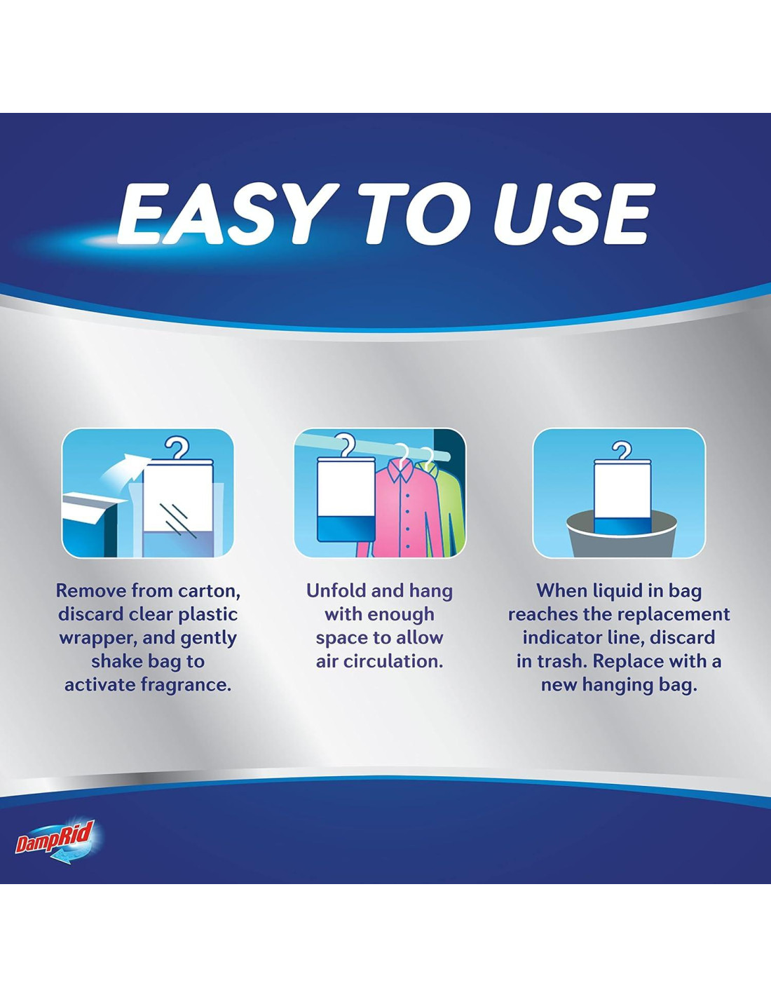 - IDEAL PARA CLOSETS: Los Absorbentes de Humedad Colgantes DampRid son un gran deshumidificador para closets, eliminando olores mohosos y exceso de humedad que pueden causar tejidos con sensación de humedad y daños a tu ropa y artículos de cuero.
