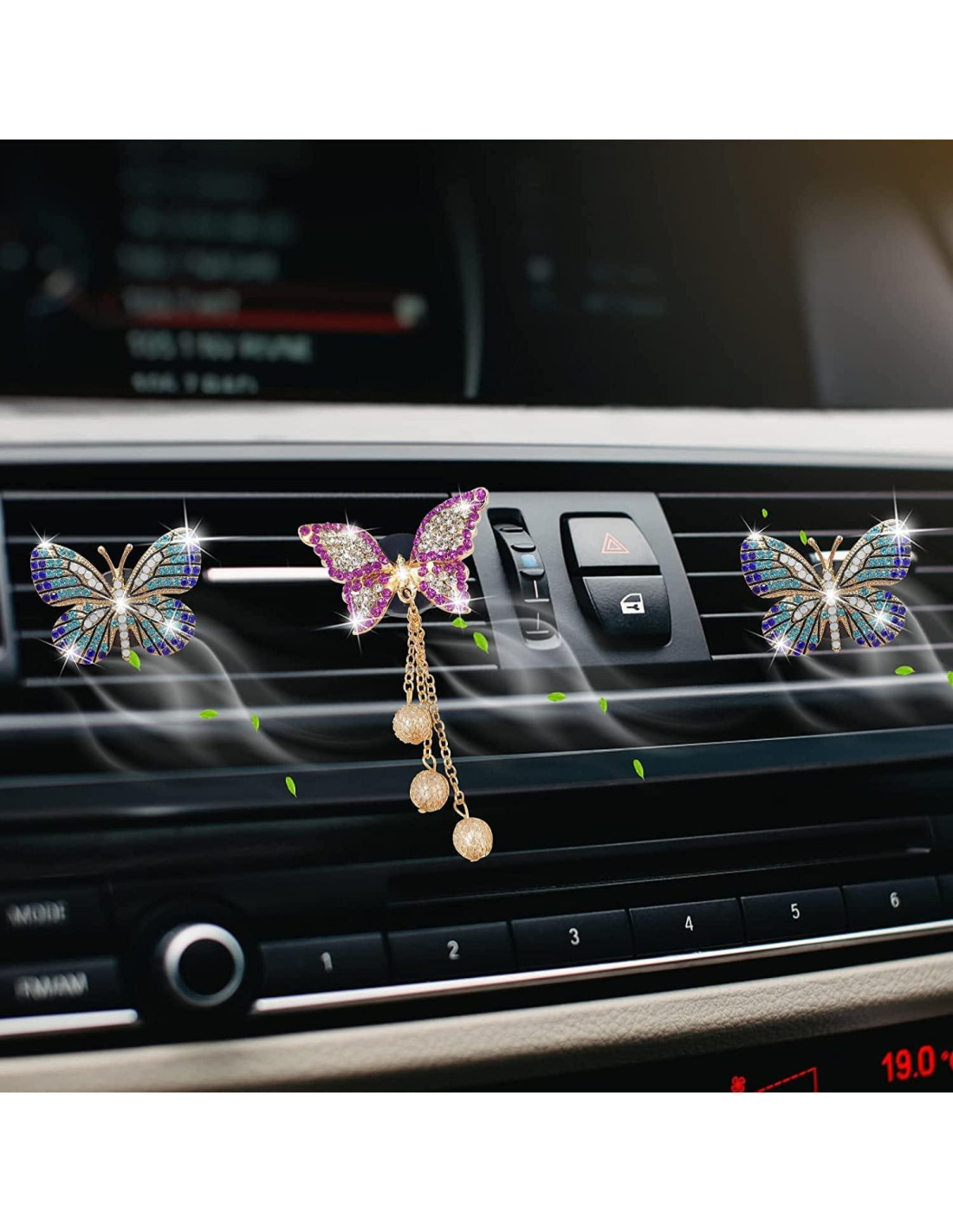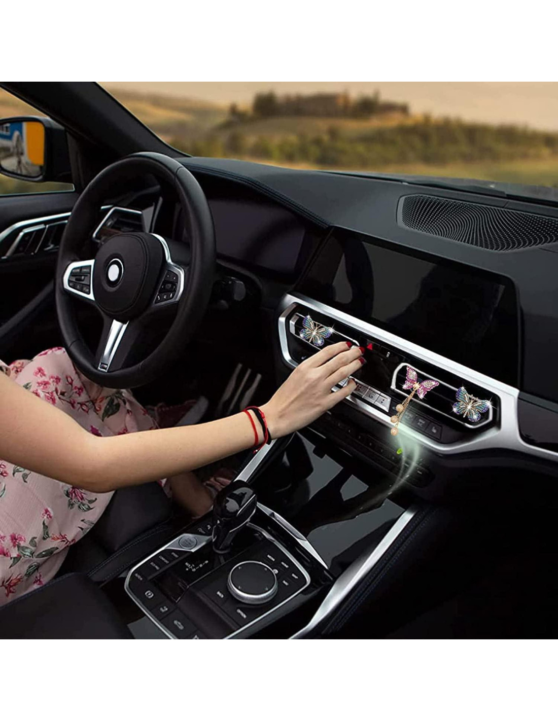 - Material: Los Accesorios Brillantes para Coche para Mujeres están hechos de materiales de Metal y Strass, que el encantador Encanto de Decoración Interior de Coche es fácil de instalar en la salida de aire del coche para decorar el coche. La mano de obra es exquisita, fuerte y duradera. Cada paquete de ambientador de coche de cristal se puede instalar en todas las salidas de aire del coche para crear un tamaño vanguardista y una atmósfera fresca. Puedes poner un poco de tu perfume favorito en la almohadilla de algodón cuando el aroma se disipe.