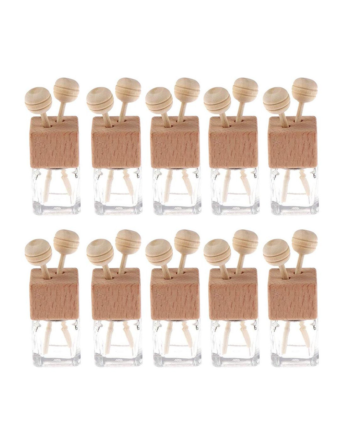 - [Paquete Incluido] 10 Piezas de botella de perfume de vidrio para auto con tapón interior, clip de metal, varilla de volatilización de madera, 1 embudo y 1 gotero gratis.