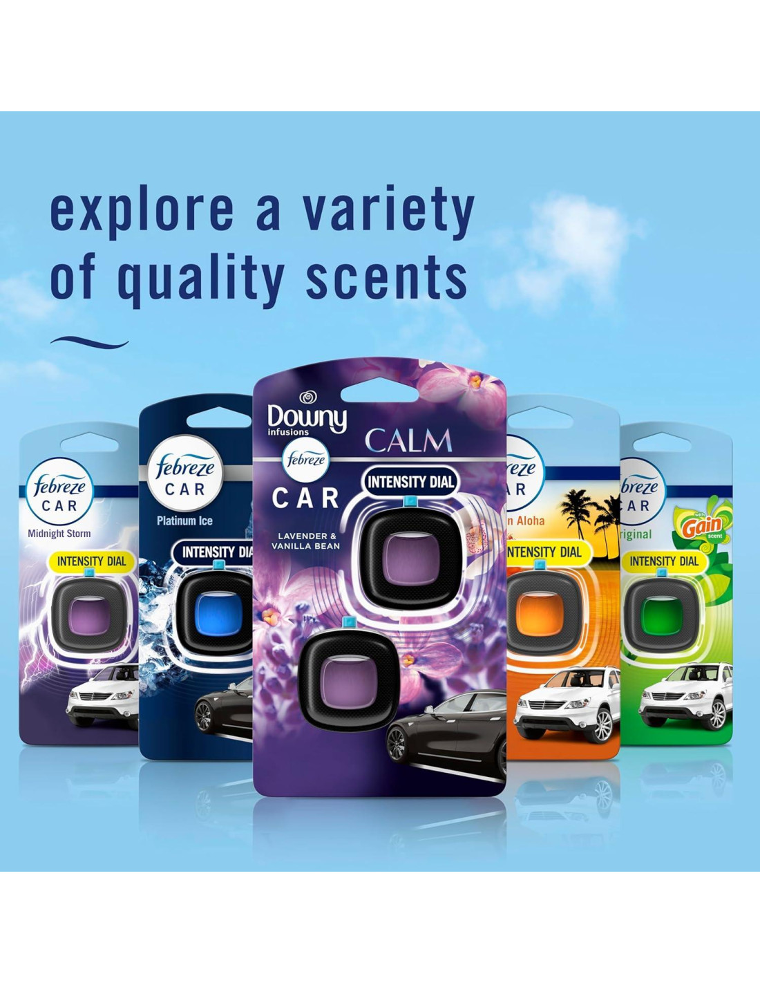 Elimina los olores del auto y disfruta de hasta 40 días de aroma constante con los Clips de Ventilación Febreze para Auto. Mientras que otros ambientadores para auto comienzan con un golpe floral, Febreze huele justo bien, desde el principio. Obtendrás esa frescura de Febreze del primer día durante hasta 40 días gracias a su tecnología patentada de Liberación Continua. Este clip de ambientador para auto es muy fácil de instalar: solo despliega el clip hasta que escuches un clic, luego colócalo en tu ventilación. Utiliza el ventilador de tu auto para circular un aroma uniforme por todo tu vehículo. Envuelve tus sentidos en vainilla cremosa, flores delicadas y cálido sándalo con Downy Calm. Estos pequeños desodorantes para auto están hechos con combatientes de olores que luchan contra cualquier mal olor en el auto con un aroma que dura. Así que olvídate de esos ambientadores abrumadores que se desvanecen demasiado pronto y mejora cada viaje con la frescura duradera de Febreze Car. ¿Quieres una frescura que dure en casa también? Prueba Febreze Fade Defy PLUG.