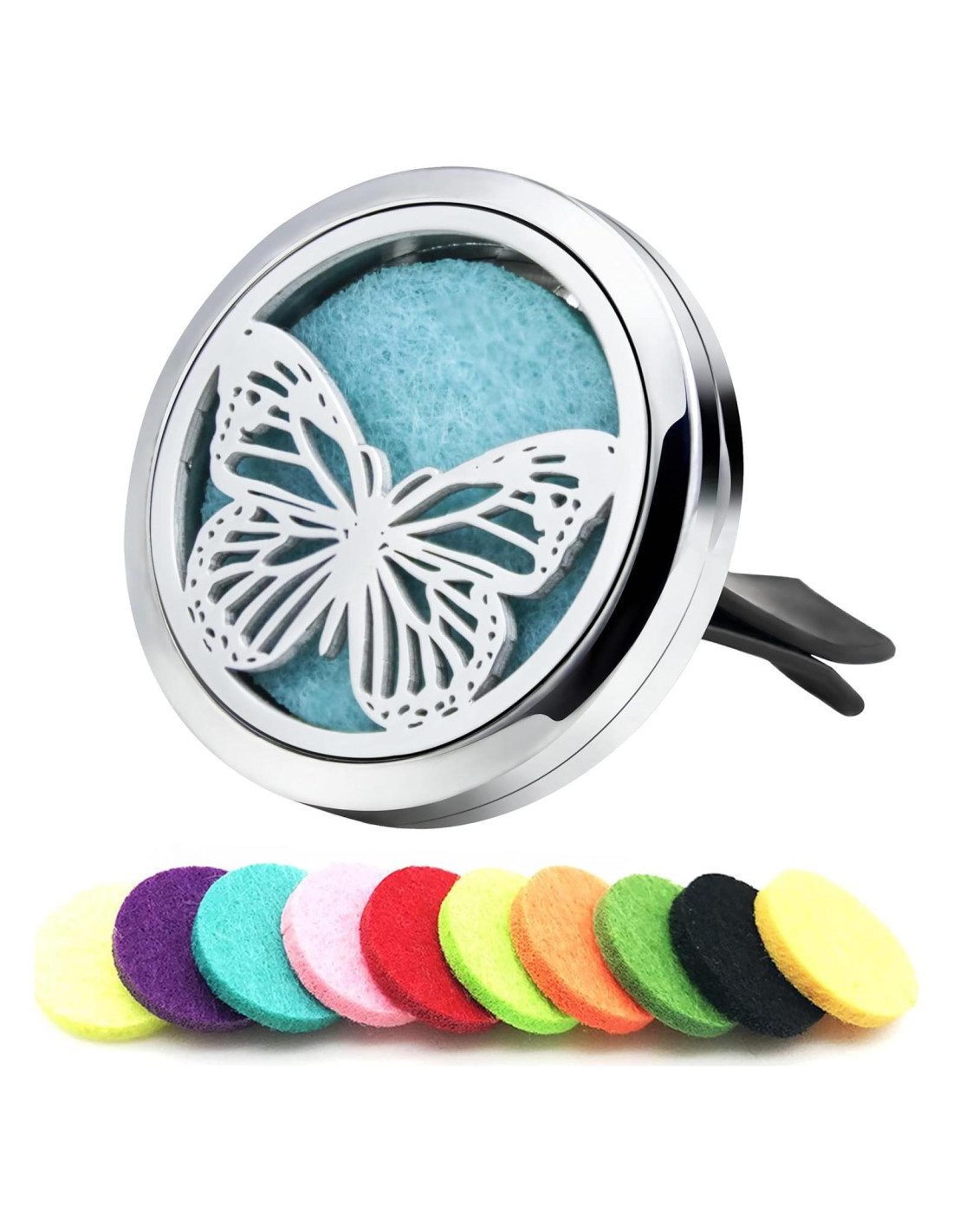 - [Material] Clip de Ventilación para Difusor de Auto de acero inoxidable 316L de alta calidad de 30mm, sólido y suave, anticorrosión, fácil de limpiar, emparejamos nuestro difusor de auto con almohadillas de recarga reutilizables de 10 colores. Completo con una parte trasera sólida y dos imanes para un cierre seguro, nunca tendrás que preocuparte por derramar aceite esencial en tu auto.