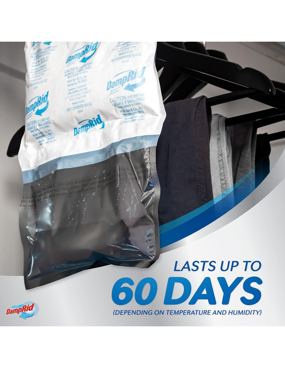 - FRESCURA DURADERA: Los absorbentes de humedad en bolsa colgante DampRid pueden durar hasta 60 días dependiendo de la temperatura y la humedad. Son ideales para armarios para proteger tu ropa y artículos de cuero de olores a moho y daños por humedad.
