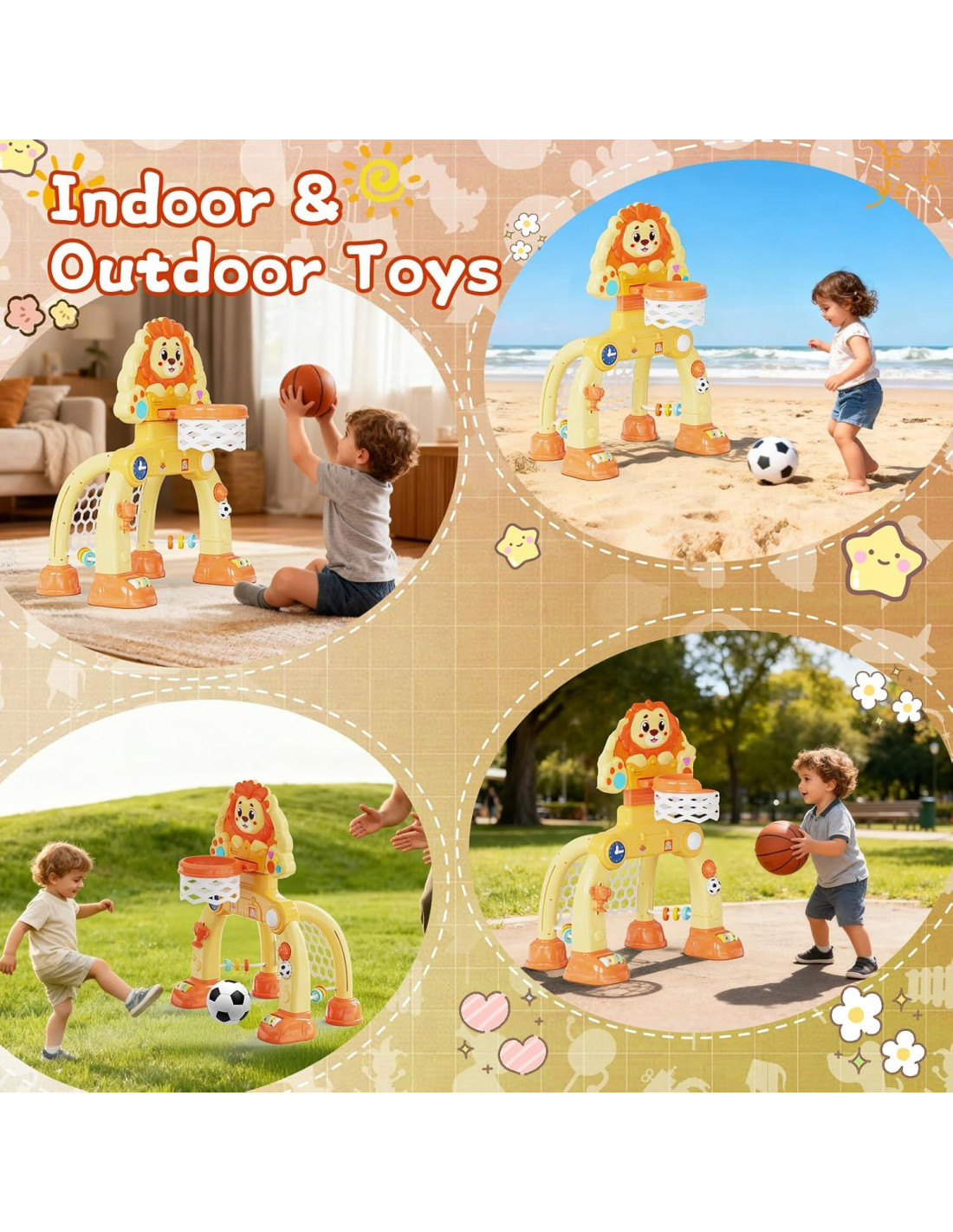 - Regalos Ideales para Bebés Niños Pequeños: Este juguete de desarrollo temprano está diseñado para bebés de 1 a 3 años que aman jugar. Incluye 1 aro de baloncesto, 1 red de fútbol, 1 balón de baloncesto inflable suave, 1 balón de fútbol y todas las herramientas necesarias. Es un juguete de aprendizaje deportivo temprano para bebés, equipado con más de 30 canciones y sonidos, luces y una variedad de juegos de habilidades motoras finas. Grandes regalos de Navidad, cumpleaños y Acción de Gracias para niños pequeños de 1 a 3 años.