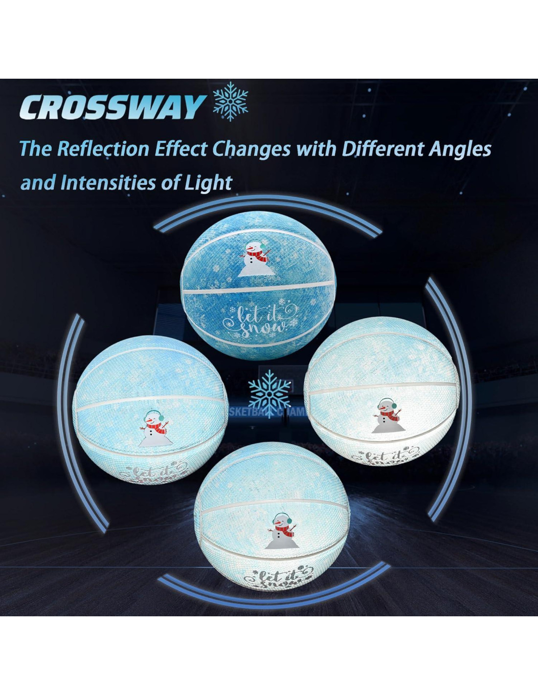 - USO INTERIOR Y EXTERIOR: Este balón de baloncesto reflectante con temática de copos de nieve está diseñado tanto para baloncesto en interiores como en exteriores. Ya sea para juegos de baloncesto, entrenamiento o entretenimiento casual, maneja todas las situaciones con facilidad.
