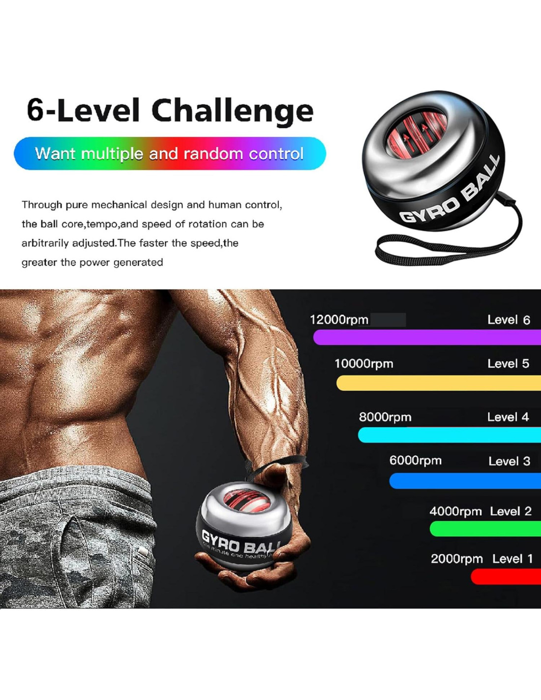 - Dominio del Espectro de Color de 6 Etapas: A medida que la resistencia de rotación de la bola de torque para muñeca aumenta, las luces LED transitan a través de un espectro de velocidad de rojo a púrpura, permitiendo a trabajadores de oficina, jugadores, escaladores y entusiastas del fitness ajustar y mejorar sin esfuerzo sus velocidades de reacción.
