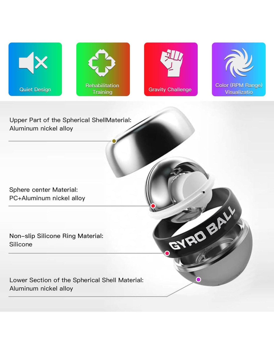 - El Compañero de Entrenamiento Definitivo: Compacta y portátil, la bola giroscópica de metal cabe fácilmente en bolsillos y mochilas para laptops, haciendo que sea sencillo incorporar ejercicio y alivio del estrés en tus viajes, jornada laboral y vida en casa.