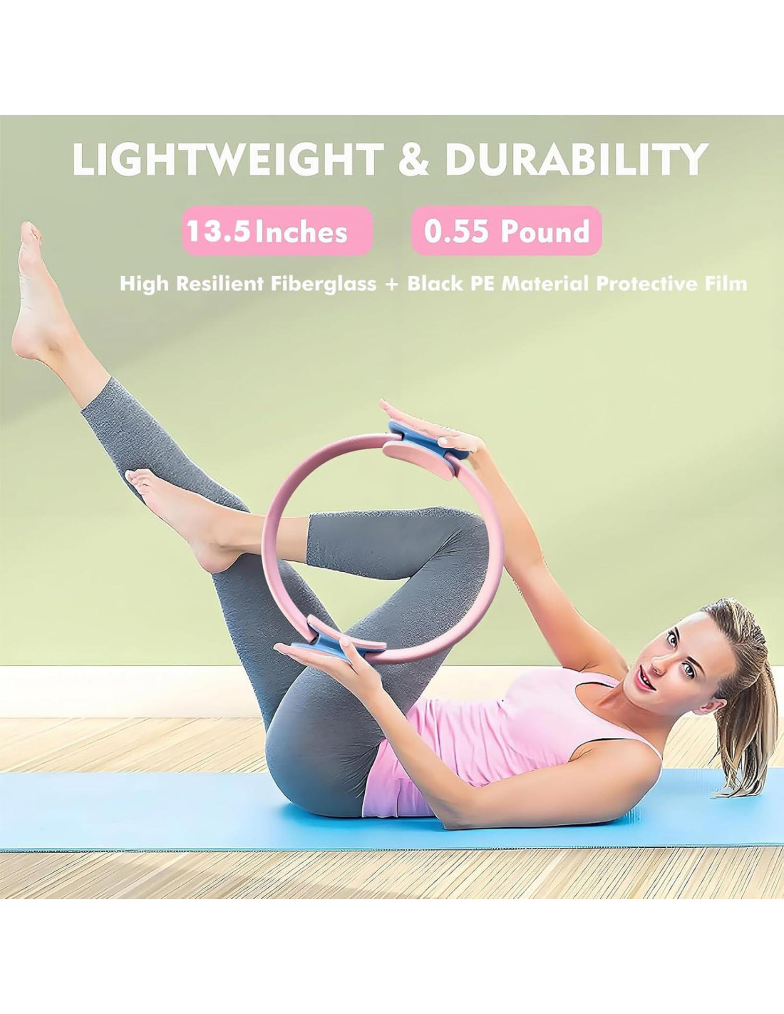 Anillo y Pelota de Pilates: El anillo de Pilates de 30.48 cm está hecho de fibra de vidrio elástica de alta calidad, cubierto con una esponja cómoda y resistente al sudor, y las manijas están equipadas con almohadillas de espuma gruesa. La pelota de Pilates de 22.86 cm es antideslizante y duradera, y viene con una pajilla para facilitar el inflado. Pueden ayudarte eficazmente a completar la mayoría de los movimientos de Pilates y fortalecer tu núcleo y músculos de todo el cuerpo.