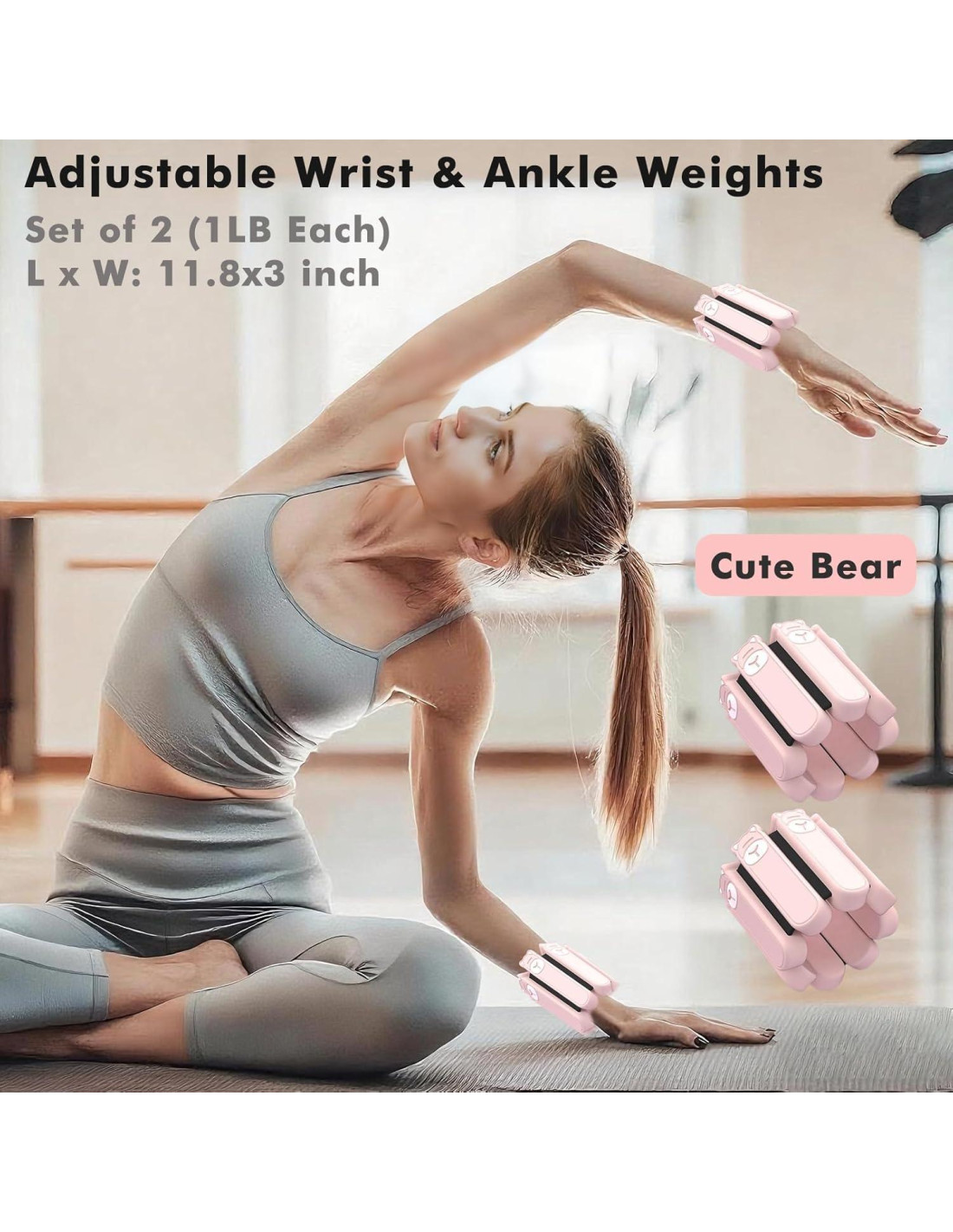 - Solo Elige Accesorios de Pilates de Alta Calidad: Los anillos de Pilates utilizan un núcleo de fibra de vidrio de alta calidad envuelto en una capa de película protectora de PE + espuma de amortiguación de 35 mm de grosor. Las pesas de muñeca están hechas de silicona de alta calidad + placas de acero, con un diseño de oso lindo.