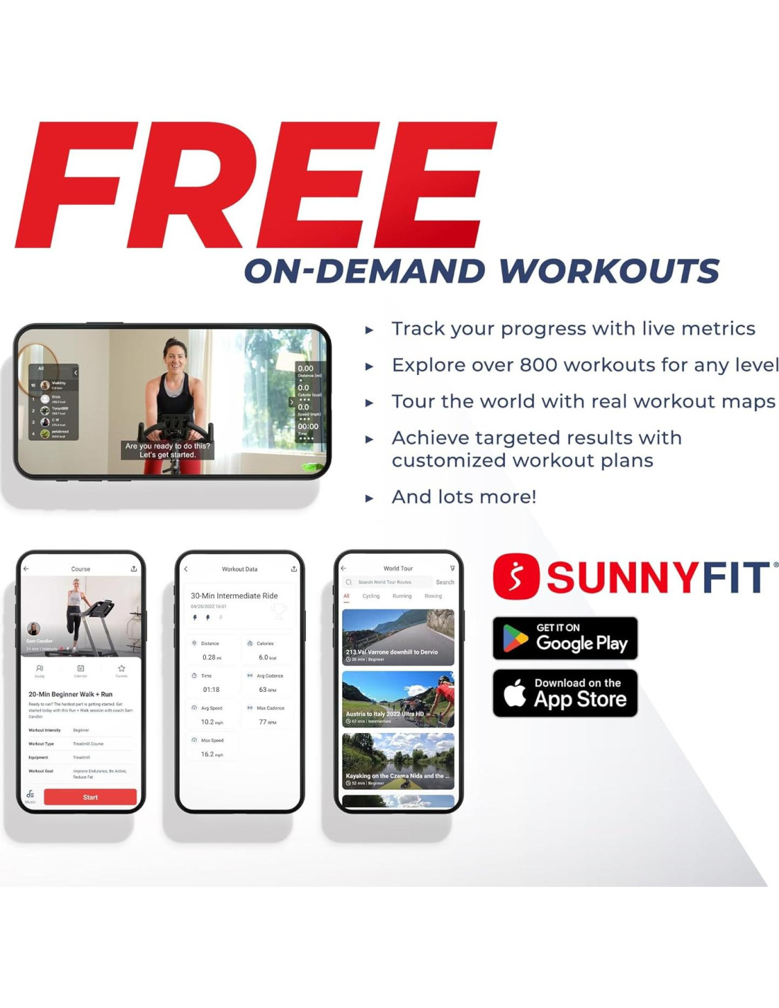 - APLICACIÓN CONECTADA GRATIS CON CLASES DE PILATES - Disfruta de acceso GRATIS a la aplicación SunnyFit con cada producto de Sunny Health & Fitness. Sumérgete en miles de entrenamientos dirigidos por entrenadores, explora más de 10,000 recorridos virtuales escénicos, rastrea tu progreso, desafía a otros y mucho más.