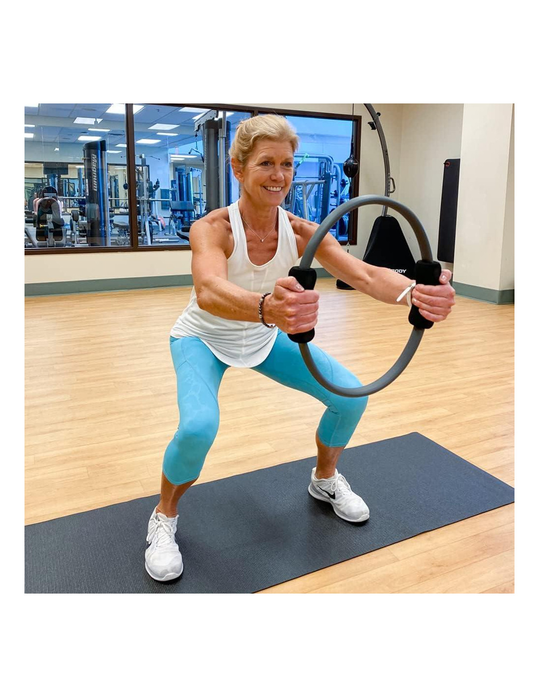 - Usa el Anillo de Pilates como un ejercitador de muslos, un constructor de bíceps, una herramienta de estiramiento y mucho más!