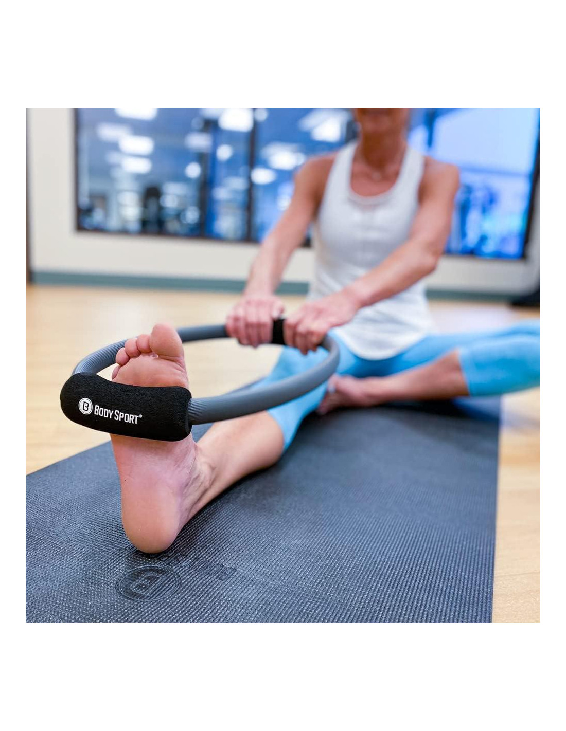 - Tonifica áreas específicas del cuerpo como los muslos externos, el núcleo, los brazos y las pantorrillas al agregar resistencia usando el Anillo de Pilates Body Sport.