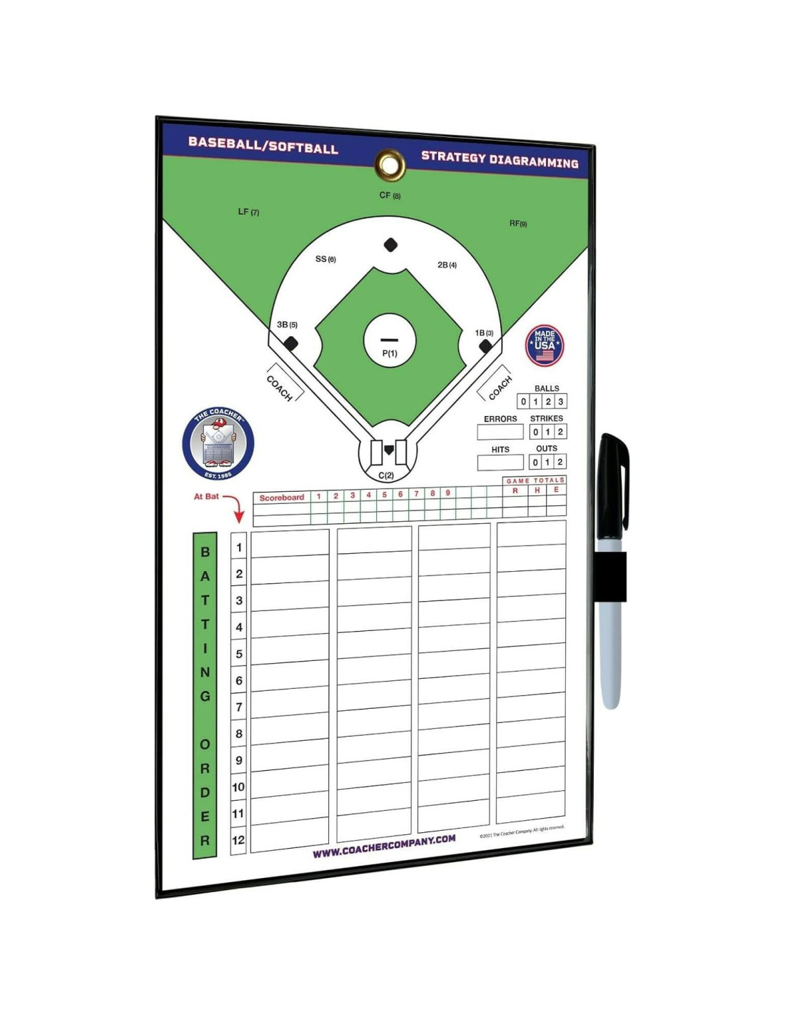 - El Tablero de Alineación de Jugadores de Béisbol y Softbol Magnético de The Coacher mide 21.6 cm x 35.6 cm (8-1/2" x 14")