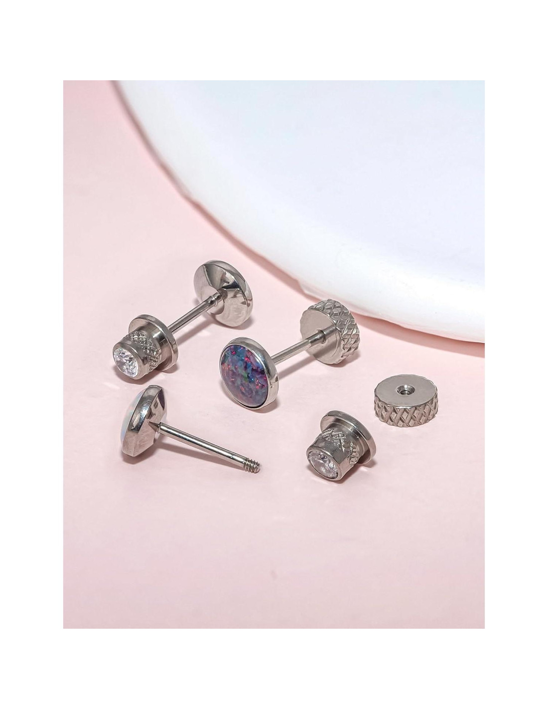 - Diseño de Respaldo de Tornillo Seguro: Los pendientes de titanio cuentan con un diseño de respaldo plano seguro y roscado para un uso prolongado. No te preocupes por que se aflojen o se caigan, cuando estés durmiendo por largos períodos de tiempo, bañándote, nadando y en otros deportes y vida diaria