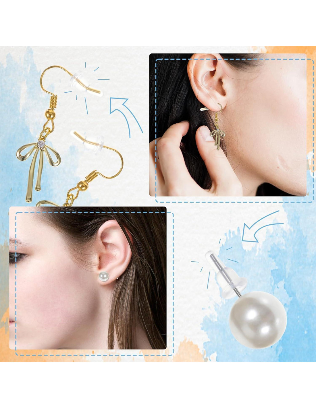 - Fácil de Agarrar: Nuestros respaldos de aretes de goma se deslizan sobre los postes de aretes sin esfuerzo y se mantienen seguros en su lugar. El diseño de los respaldos de aretes transparentes previene pérdidas accidentales, por lo que puedes usar tus aretes con confianza.