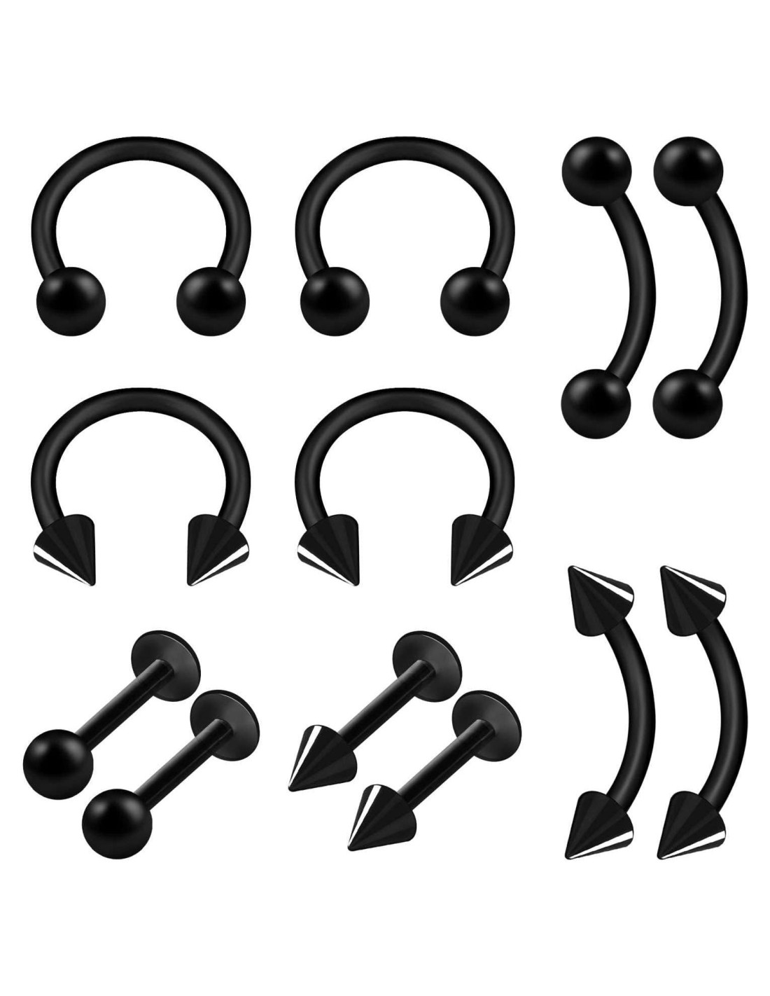 - OBTENDRÁS Una pieza de 16g (1.2mm) 5/16" (8mm) Aro de herradura negro de acrílico para hombres con bola de 3mm. Una pieza de 16g (1.2mm) 5/16" (8mm) Pendientes de herradura negra de acrílico para hombres con cono de 3mm. Una pieza de 16g (1.2mm) 5/16" (8mm) Barra de perforación curvada de acrílico negro de 3mm. Una pieza de 16g (1.2mm) 5/16" (8mm) Barra de perforación curvada de acrílico negro para piercing de trago con cono de 3mm. Una pieza de 16g (1.2mm) 5/16" (8mm) Aro de labret de acrílico negro para labio con bola de 3mm. Una pieza de 16g (1.2mm) 5/16" (8mm) Aros de labret de acrílico negro de 3mm con cono.