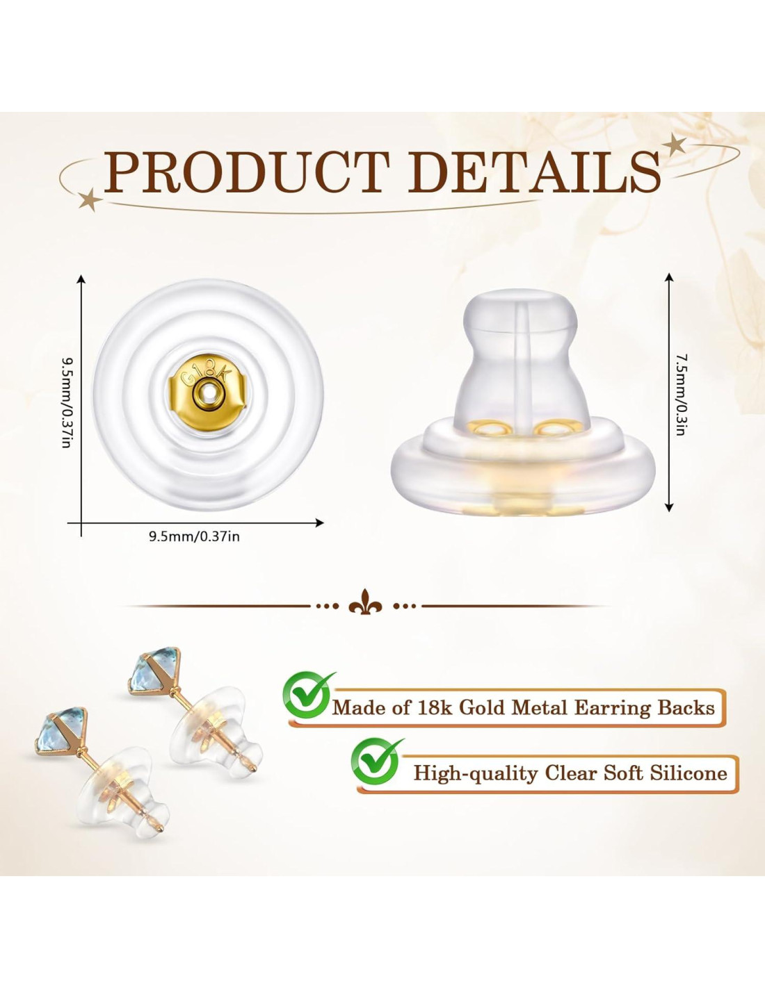 - Material Premium: Los nuevos respaldos de pendientes están hechos de metal plateado en oro de 18K y silicona suave y clara, que son cómodos de usar y no irritan la piel. Con el material premium, es un accesorio seguro para mujeres, hombres, niños y niñas. Consejos: NO PARA NIÑOS MENORES DE 3 AÑOS. PELIGRO DE ASFIXIA - Piezas pequeñas.