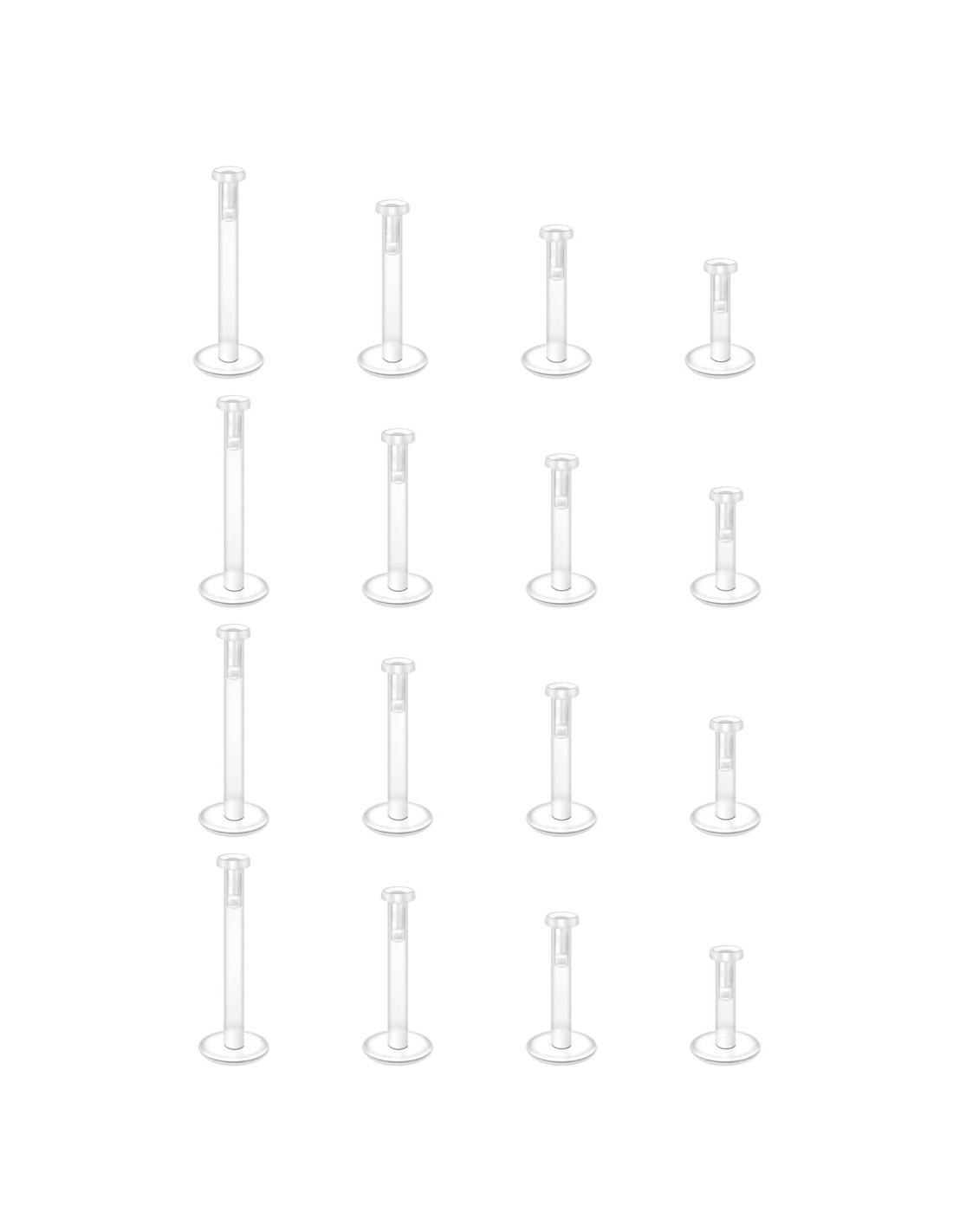 - [Característica]: Diferentes longitudes de retenedores de pendientes transparentes, utilizados para pendientes de cartílago transparentes, anillos labiales transparentes, studs de pendientes de plástico para cirugía; pendientes transparentes para trabajo, anillos labiales transparentes para trabajo. Por favor, confirme la longitud que necesita antes de la compra; Diferentes longitudes se pueden usar para diferentes usos.