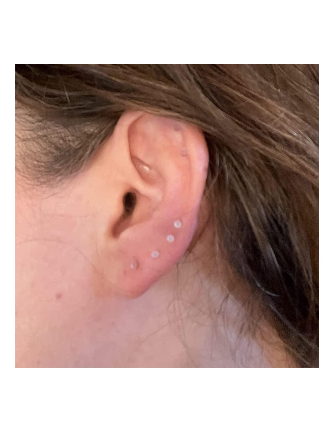 - [Uso]: Los studs de plástico se pueden usar como pendientes transparentes para deportes, pendientes de cartílago transparentes; retentor de labret transparente, anillos labiales transparentes, studs labiales de plástico, retentor de piercing de labret, pendientes de plástico transparentes para deportes, studs de pendientes transparentes para trabajo cirugía;