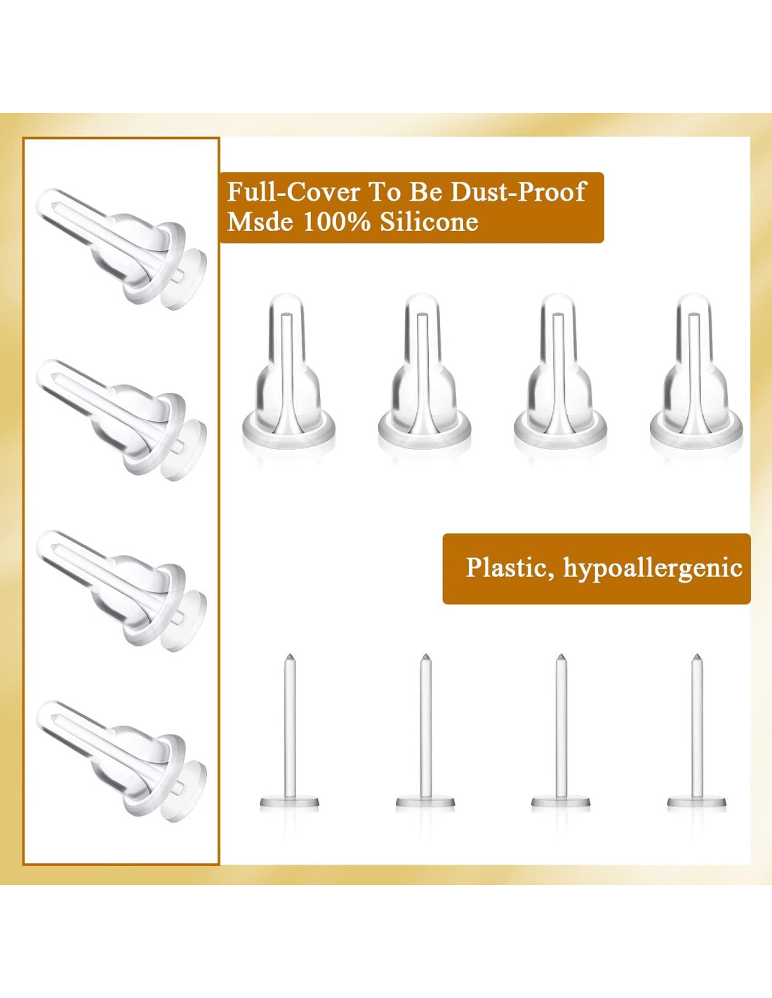 - Grupo bien combinado: los pines de pendientes y los suaves pines de goma de silicona están bien combinados para servirte en la vida diaria, los pendientes de pines estarán completamente cubiertos y son simples de agarrar, por lo tanto, son a prueba de polvo y pueden proteger bien tus pendientes de perderse y deslizarse, ligeros y fáciles de usar, tampoco tomarán mucho tiempo para quitarse