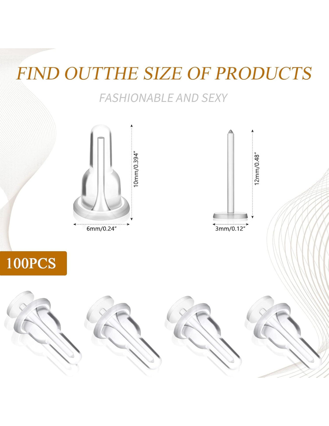 - Reemplazo diario y manualidades: recibirás 100 piezas de pines de pendientes y 100 piezas de sujetadores de oreja suaves de goma de silicona, están empaquetados en una caja de almacenamiento, fácil para ti de llevar y usar en la vida diaria, también puedes prepararlos como reemplazos