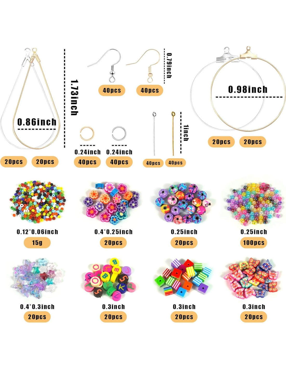 - PAQUETE: Kit de fabricación de pendientes de 940PCS con 80pcs aros para pendientes, 80pcs ganchos, 80pcs anillas de salto en oro y plata y 80pcs alfileres, 400pcs cuentas (15g), 220pcs cuentas con diferentes formas.