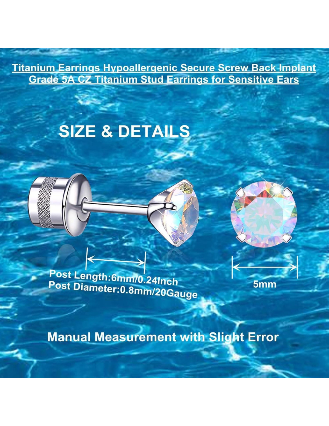- TAMAÑO DE PENDIENTES DE TITANIO: 5mm / 0.2 pulgadas, CZ Redonda; Longitud del poste: 6.0mm / 0.25 pulgadas, 20g (0.8mm de grosor). Por favor, verifica los detalles del tamaño antes de comprar, puedes consultar la Imagen de Tamaño y la Imagen de Modelo usándola como referencia
